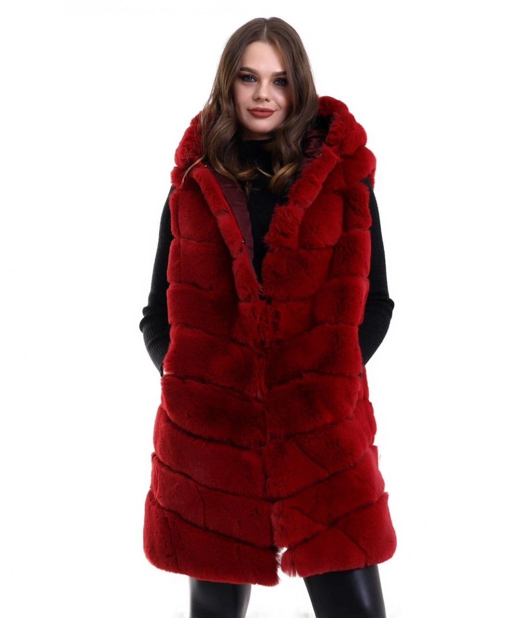Reks Kapüşonlu Yelek - Kırmızı -