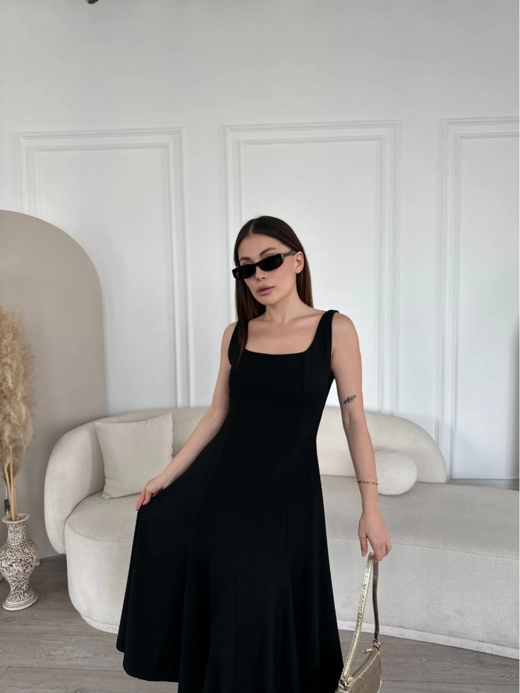Sırt Dekolteli Kolsuz Uzun Elbise - Siyah -