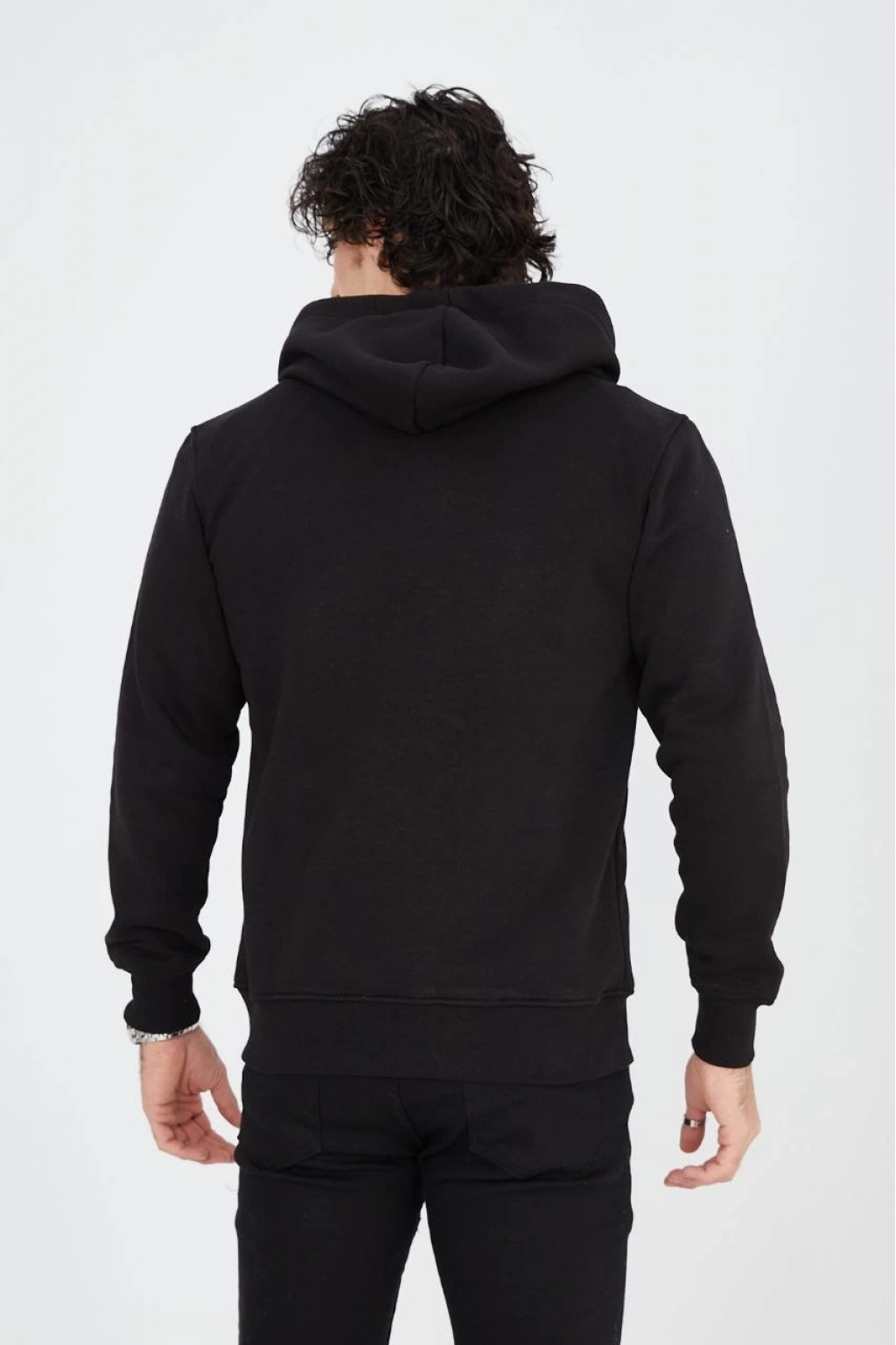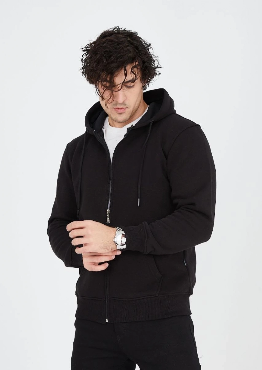 Tam Fermuarlı Kapşonlu  SweatShirt - Siyah -