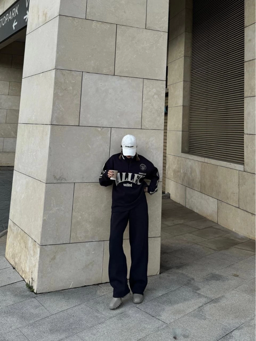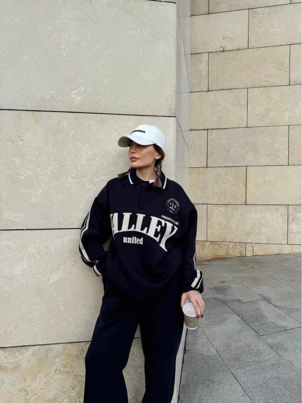 Üç İplik Yakalı Sweat Baggy Pantalonlu Takım - Siyah -