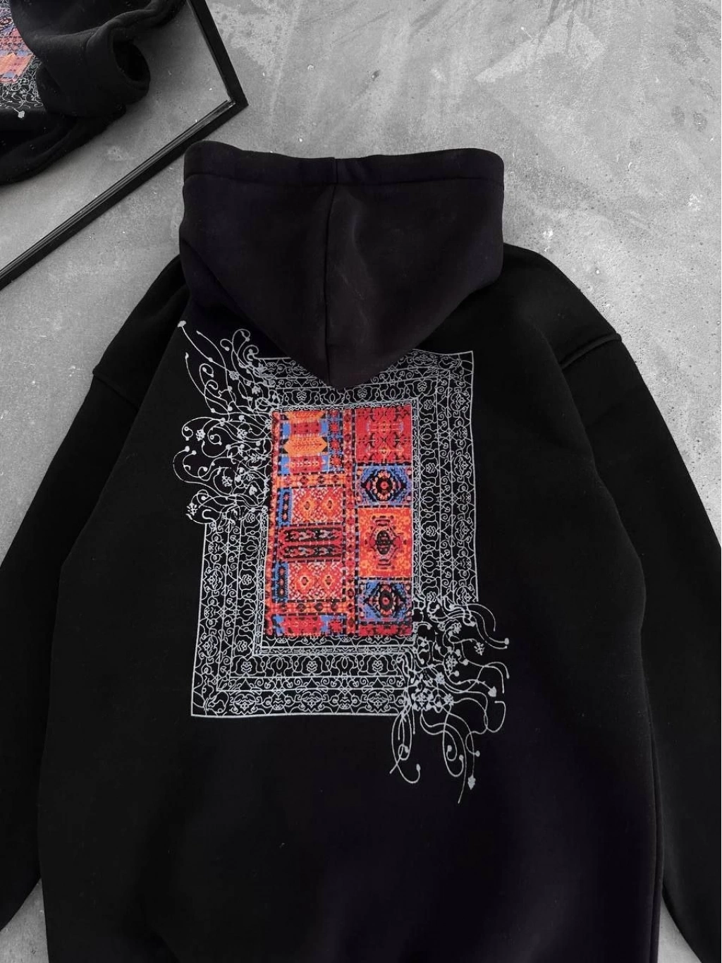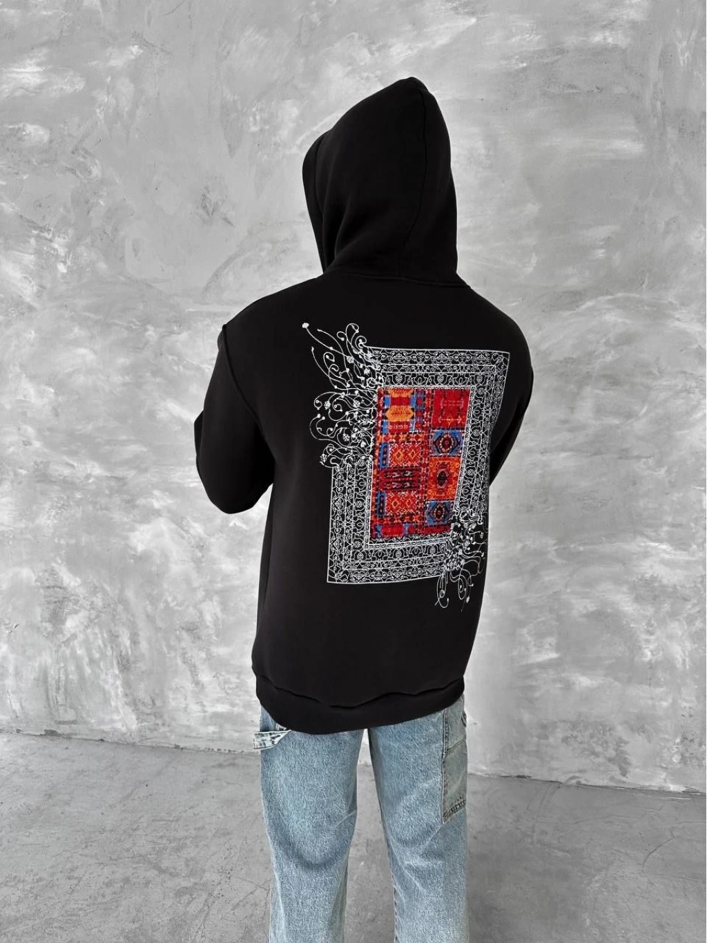 Uzun Kol Kapüşonlu Ön Ve Arka Baskılı SweatShirt - Siyah -