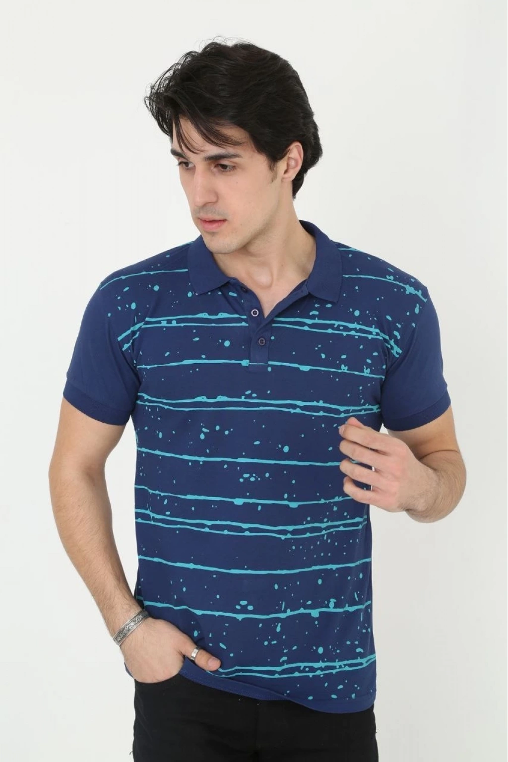 Yakalı Slim Fit Pike Çizgili T-Shirt - Mavi -