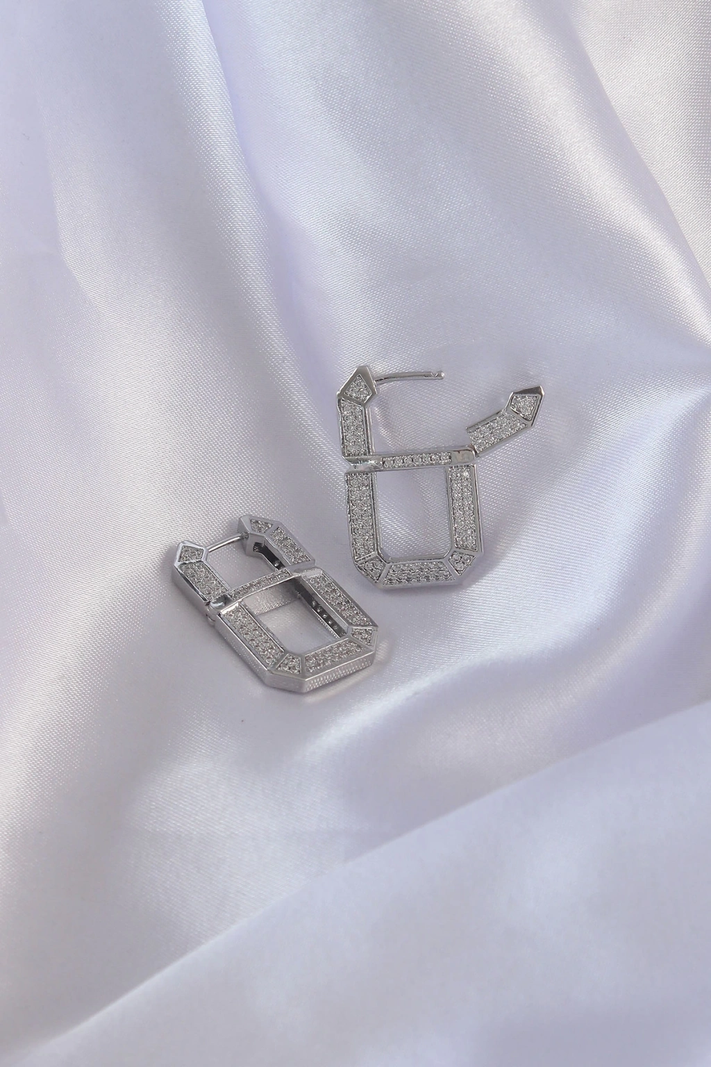 Vip Seri Pirinç Gümüş Renk Zirkon Taşlı Serenay Küpesi