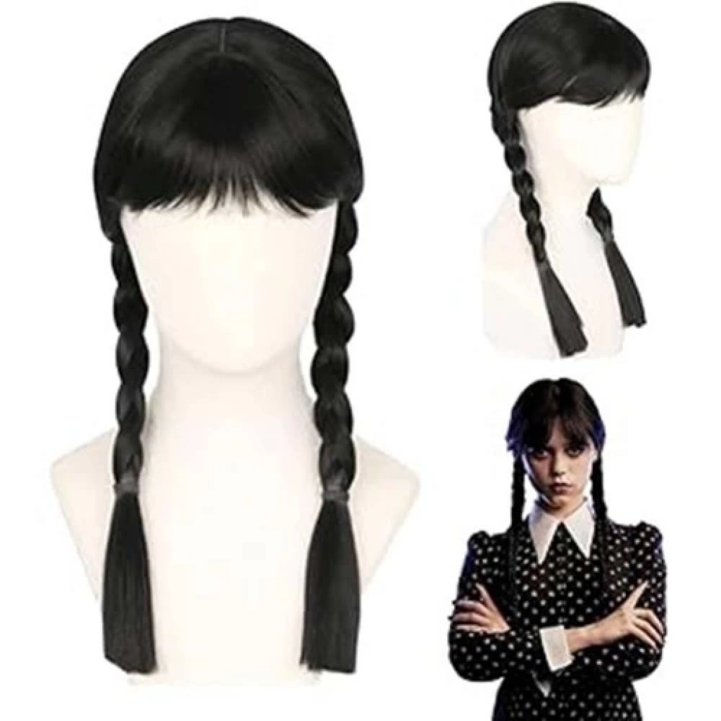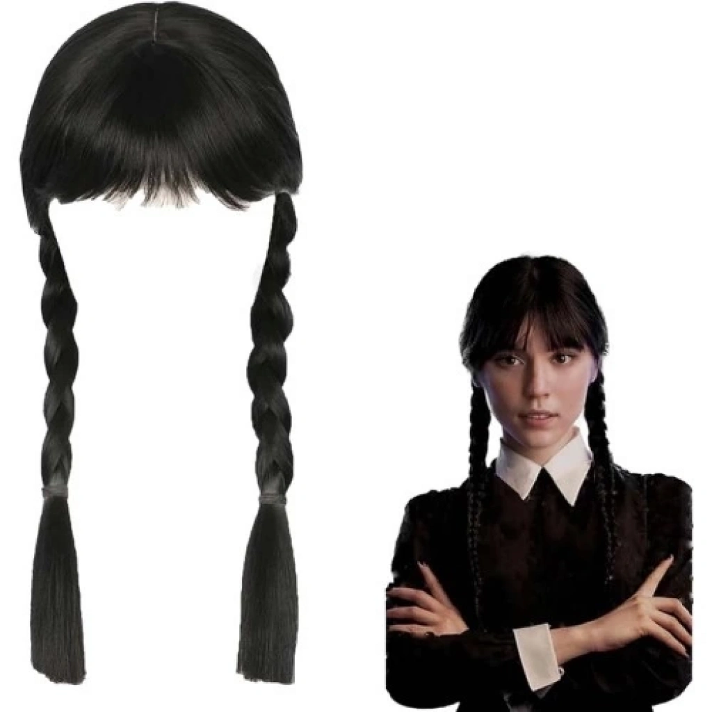 Wednesday Siyah Örgülü Peruk