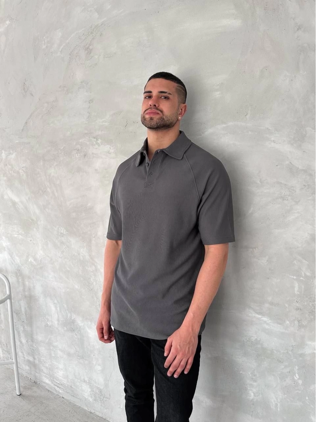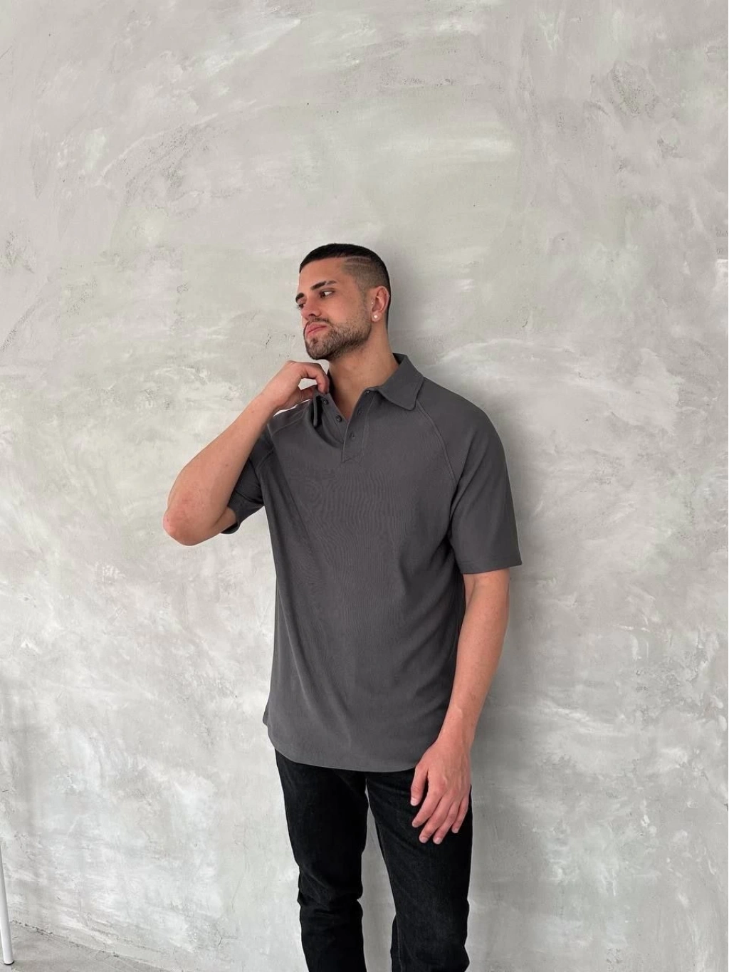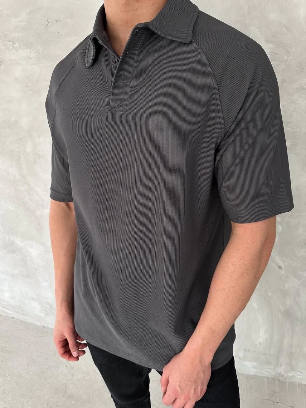 Yakalı Patlı Kısa Kol T-shirt - Antrasit -