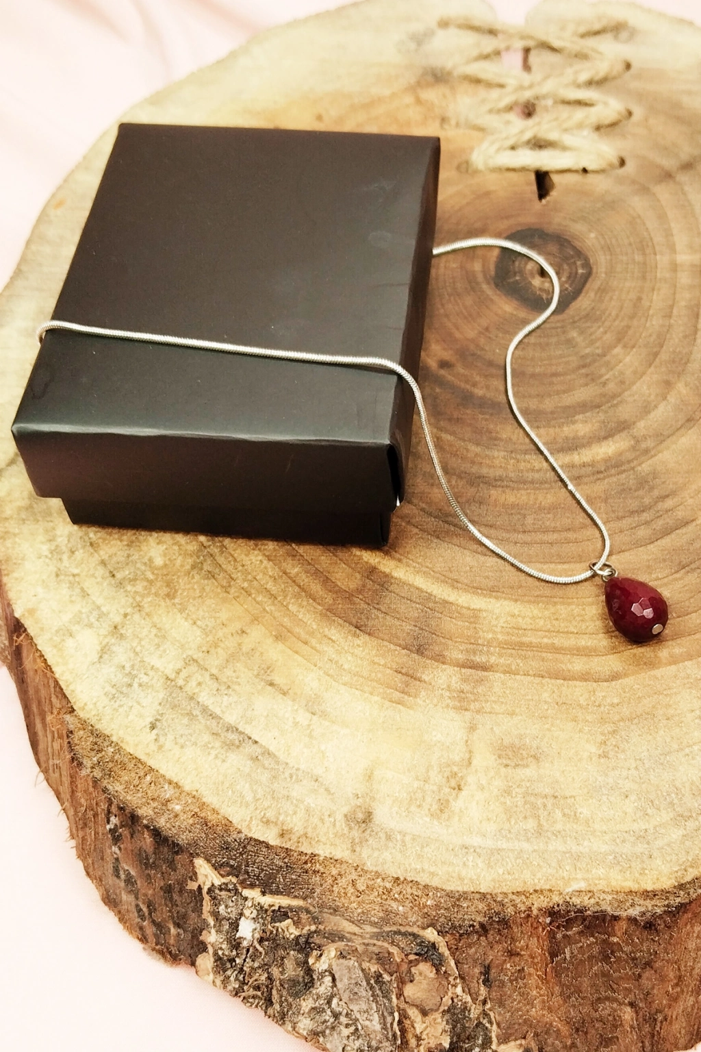 Yakut Doğal Taşı Zincirli El Yapımı Kolye Uç: 1,5 cm Zincir: 20 cm Kutulu