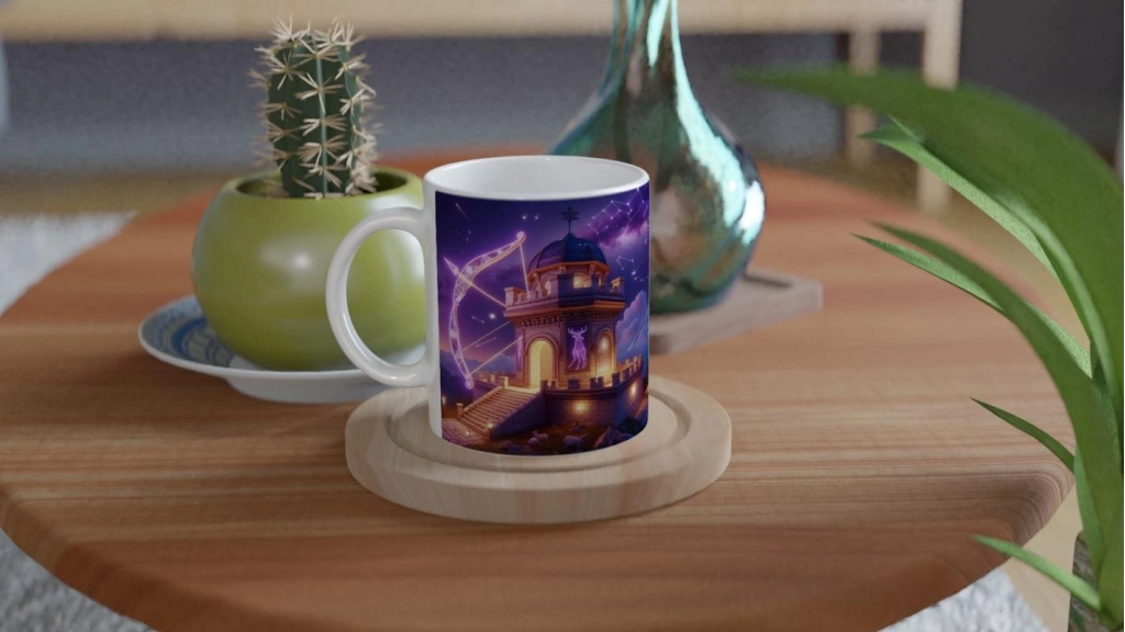 Yay Burcu Baskılı Kahve Kupası - Burçlar Krallığı Şatosu Vs1