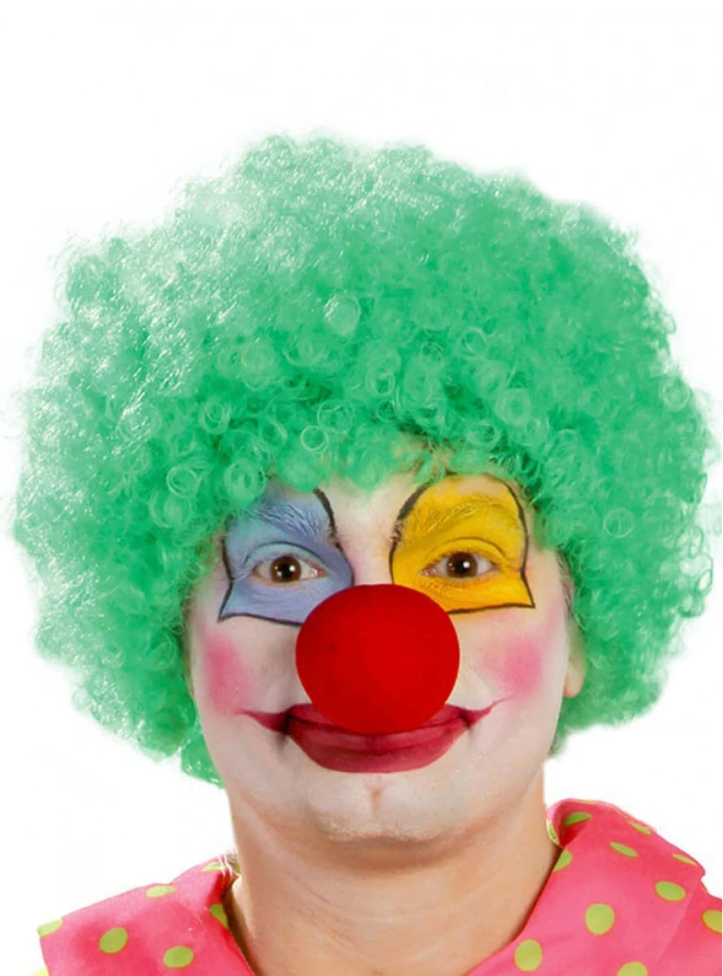 Yeşil Renk Kıvırcık Afro Bonus Peruk Takma Saç Ve Kırmızı Burun Seti
