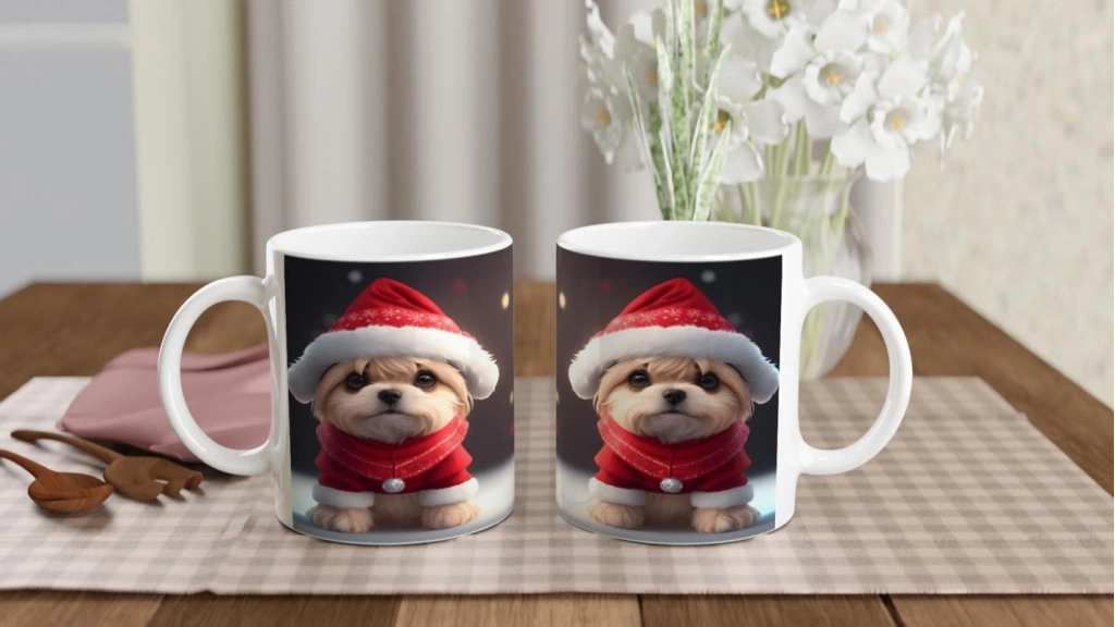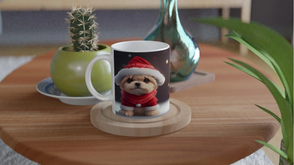 Yılbaşı Kostümlü Sevimli Köpekçik Baskılı Kupa Bardak, tatil sezonuna özel tasarımıyla sıcak içeceklerinize eğlenceli ve sevimli bir dokunuş getiriyor.