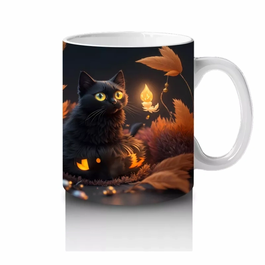 Renkli yılbaşı ışıkları ve süslemeleriyle parlayan kediler, hem gizemli hem de kutlama dolu bir atmosfer sunuyor. Hem kediseverlere hem yılbaşı temalı ürün tutkunlarına özel eğlenceli bir kupa.