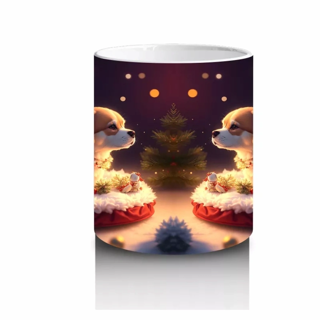 Yılbaşı Temasında Masada Oturan Köpekler – Baskılı Kahve Kupası