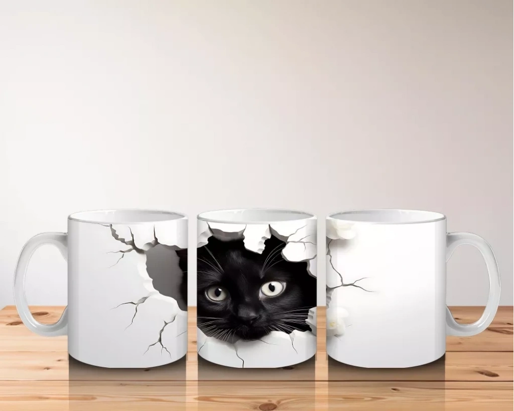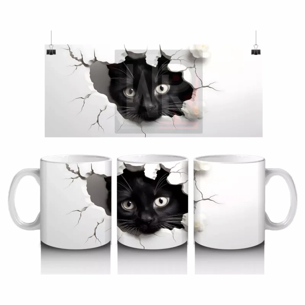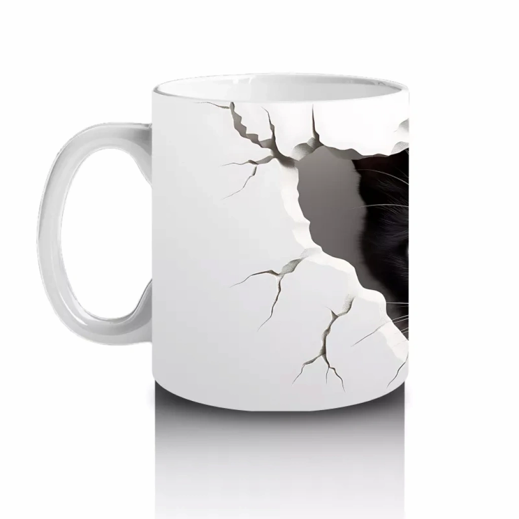 Yırtık Duvar Efektli Büyüleyici Siyah Kedi – Baskılı Kupa