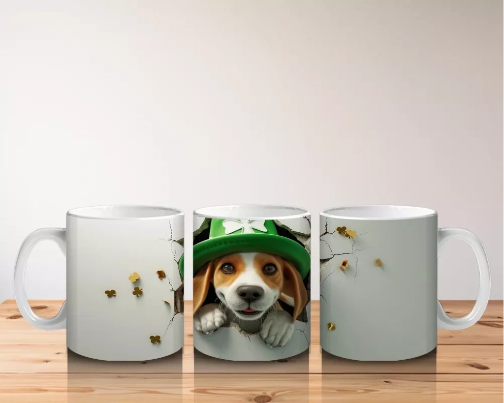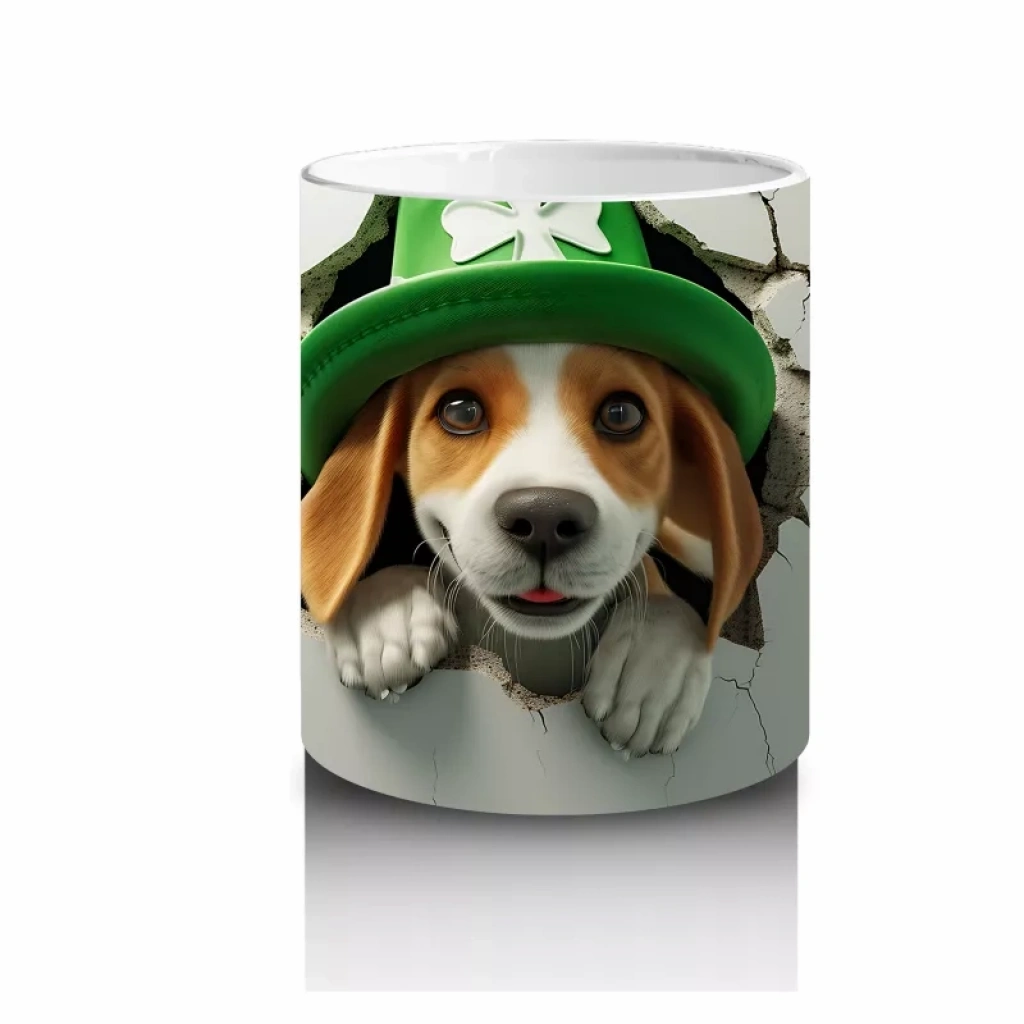 Yonca Şapkası Takmış Beagle Köpek Figürü – Baskılı Kahve Kupası
