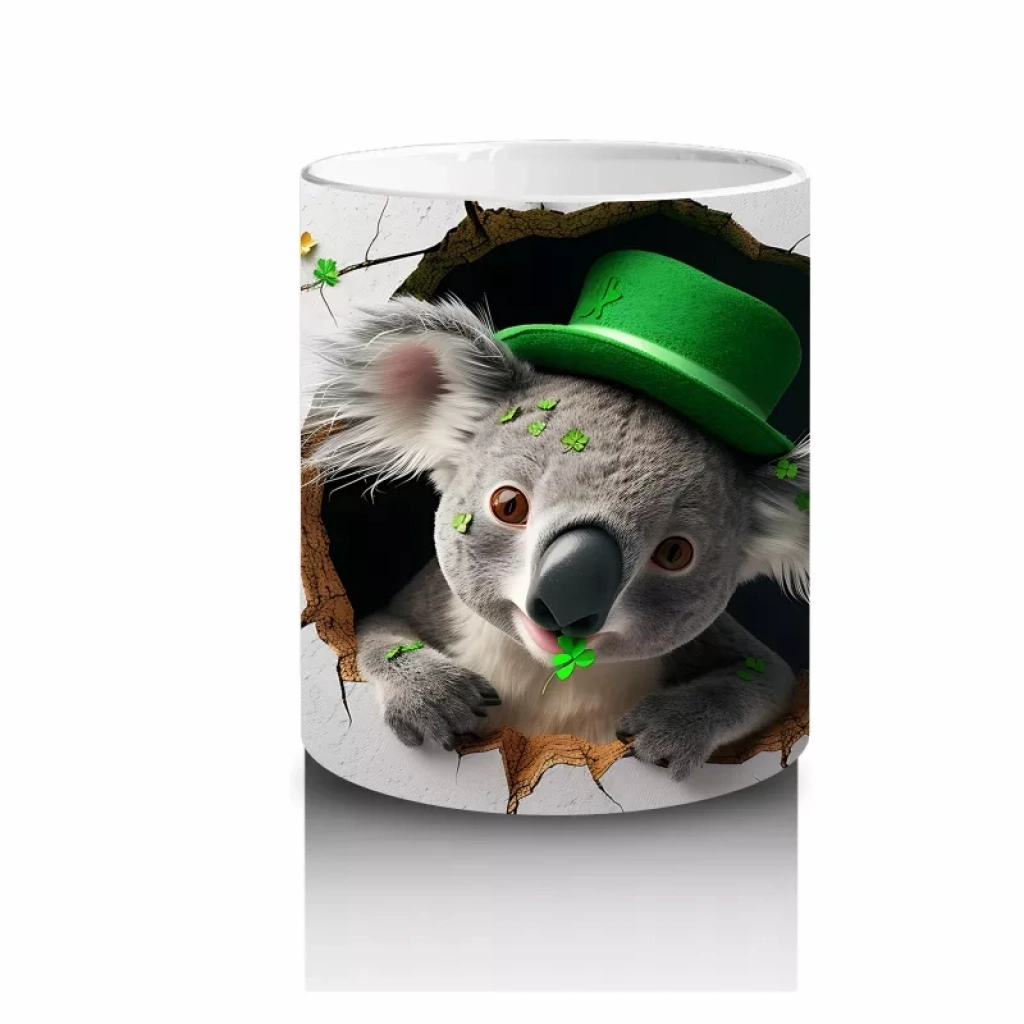 Yonca ve yapraklarla süslenmiş St. Patrick’s temalı koala figürü, doğa ve şans temasını sıcaklıkla buluşturuyor. Sevimli ve özgün tasarımlar arayanlar için özel bir kupa.