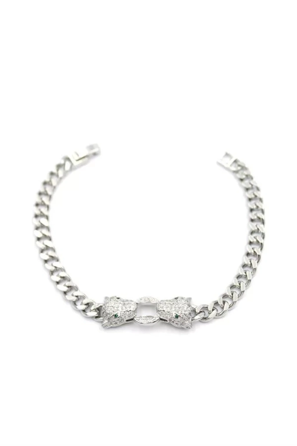 Zirkon Taşlı Leopar Bileklik - Gümüş