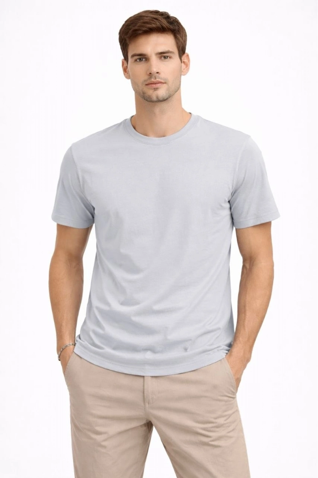 Erkek Bisiklet Yaka Tişört Regular Kalıp Basic Pamuklu Günlük Kullanım T-shirt - Gri