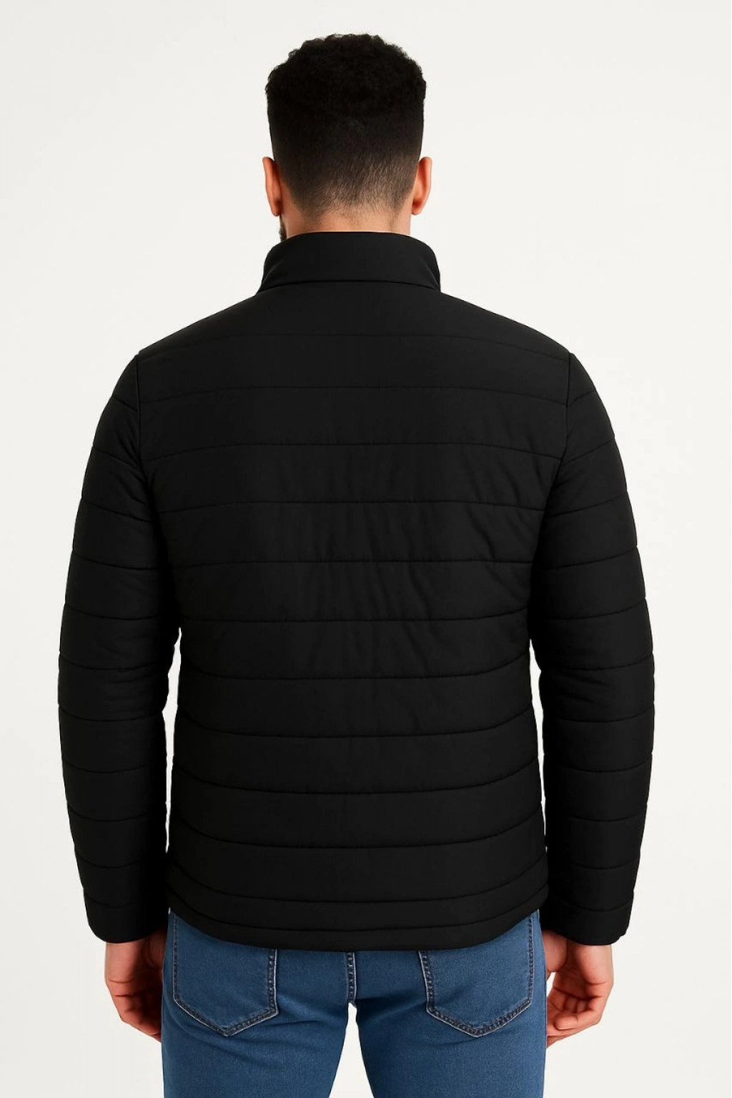 Erkek Mikro Su İtici Kapitone Baskılı Astarlı Fermuarlı Bomber Mont - Siyah