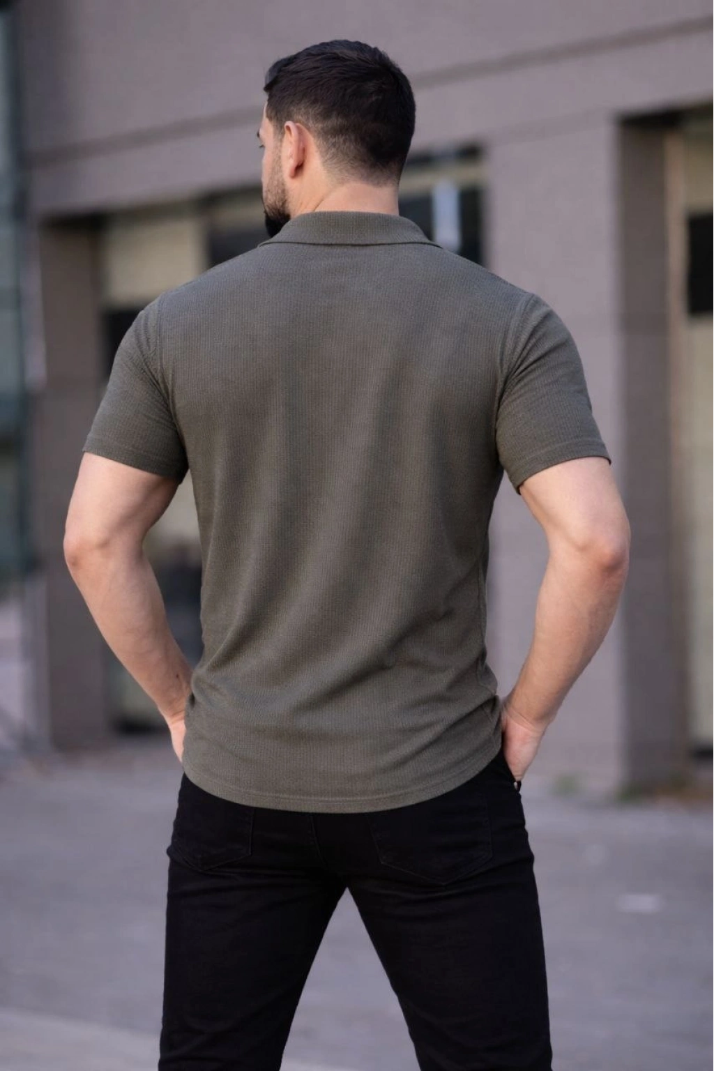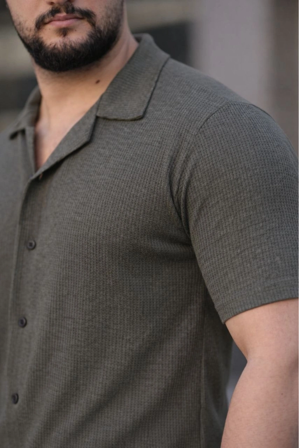 Erkek Waffle Kumaş Kısa Kollu Düğmeli Açık Yaka Regular Fit Gömlek - Haki