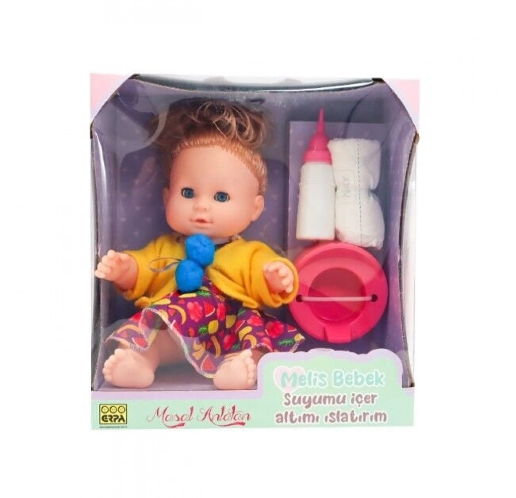 Set içerisinde; 1 adet Melis anlatan bebek, 1 adet lazımlık, 1 adet bez ve 1 adet biberon yer almaktadır.