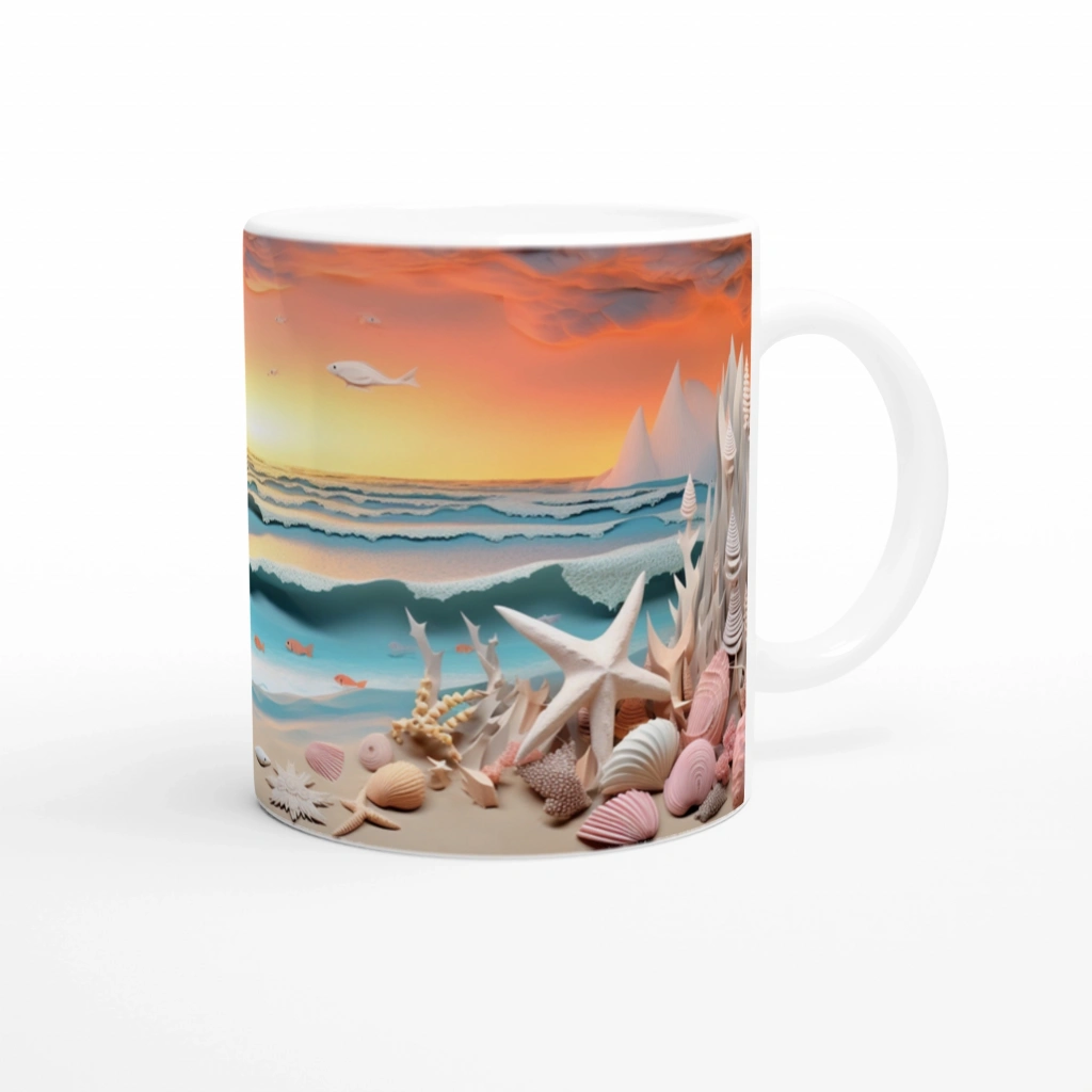 Fantastik Dalgalar ve Deniz Kabukları Su Altı Temalı Kupa Bardak