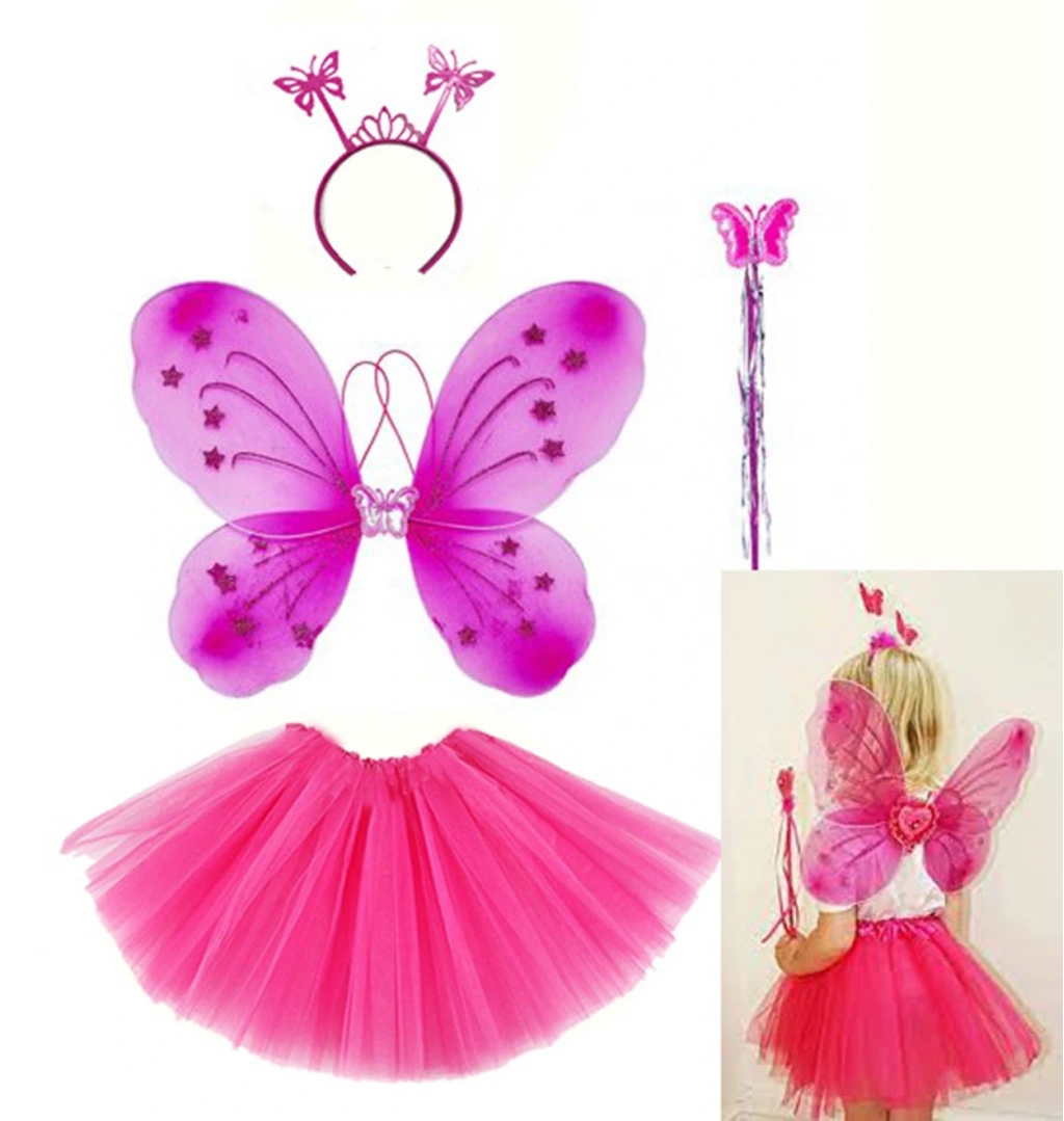 Fuşya Kelebek Kostümü - Fuşya Kelebek Kostüm Aksesuar Seti 4 Parça