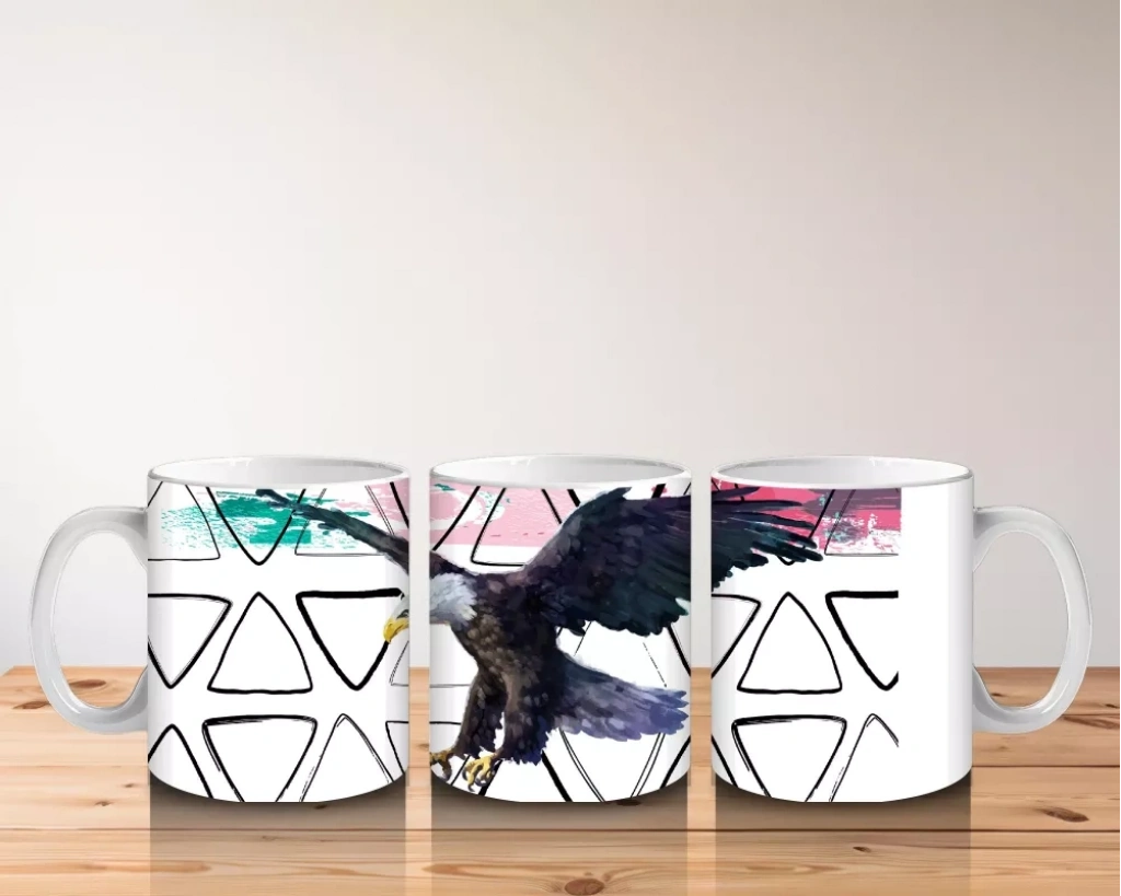 Geometrik Arka Plan Üzerinde Uçan Kartal İllüstrasyonu – Baskılı Kahve Kupası