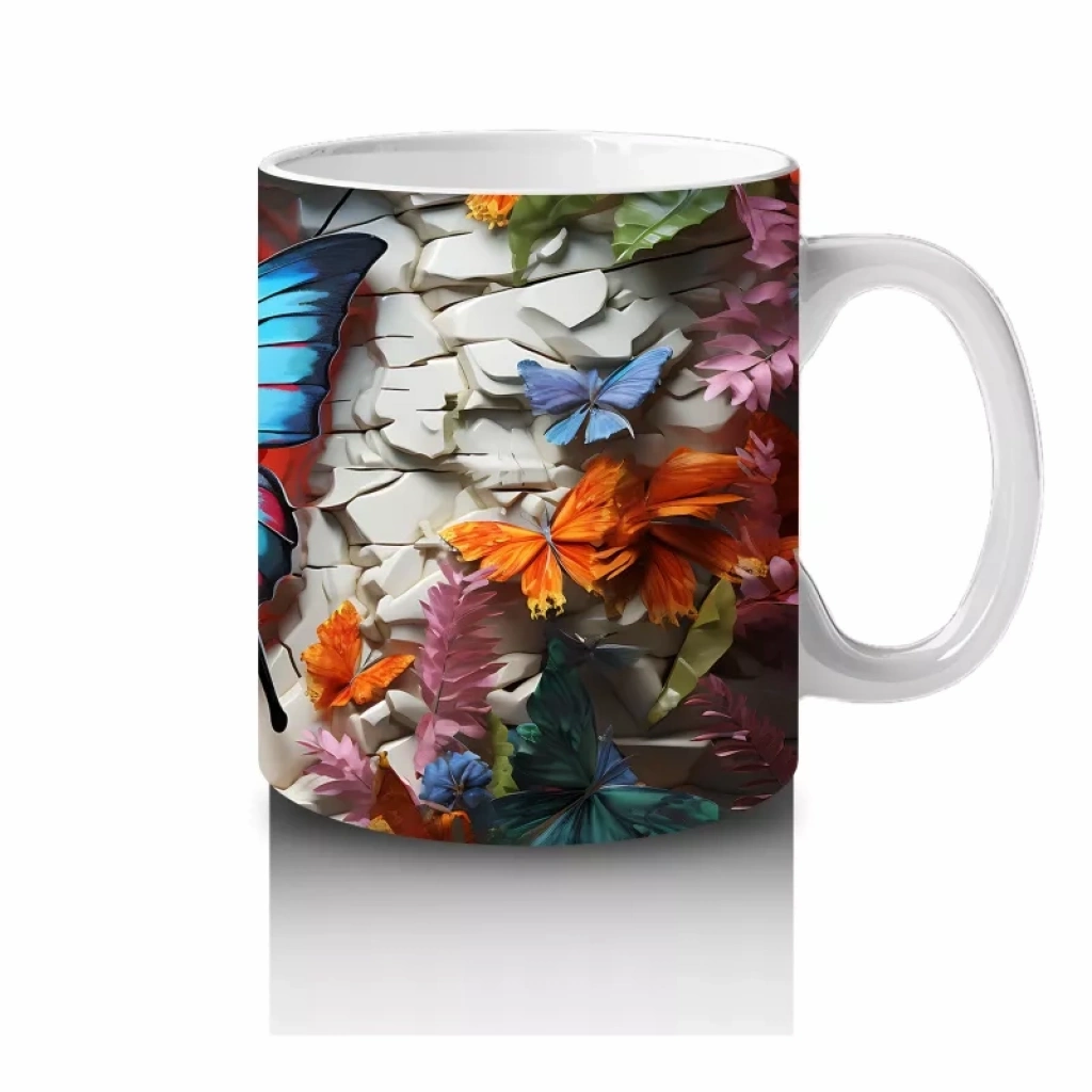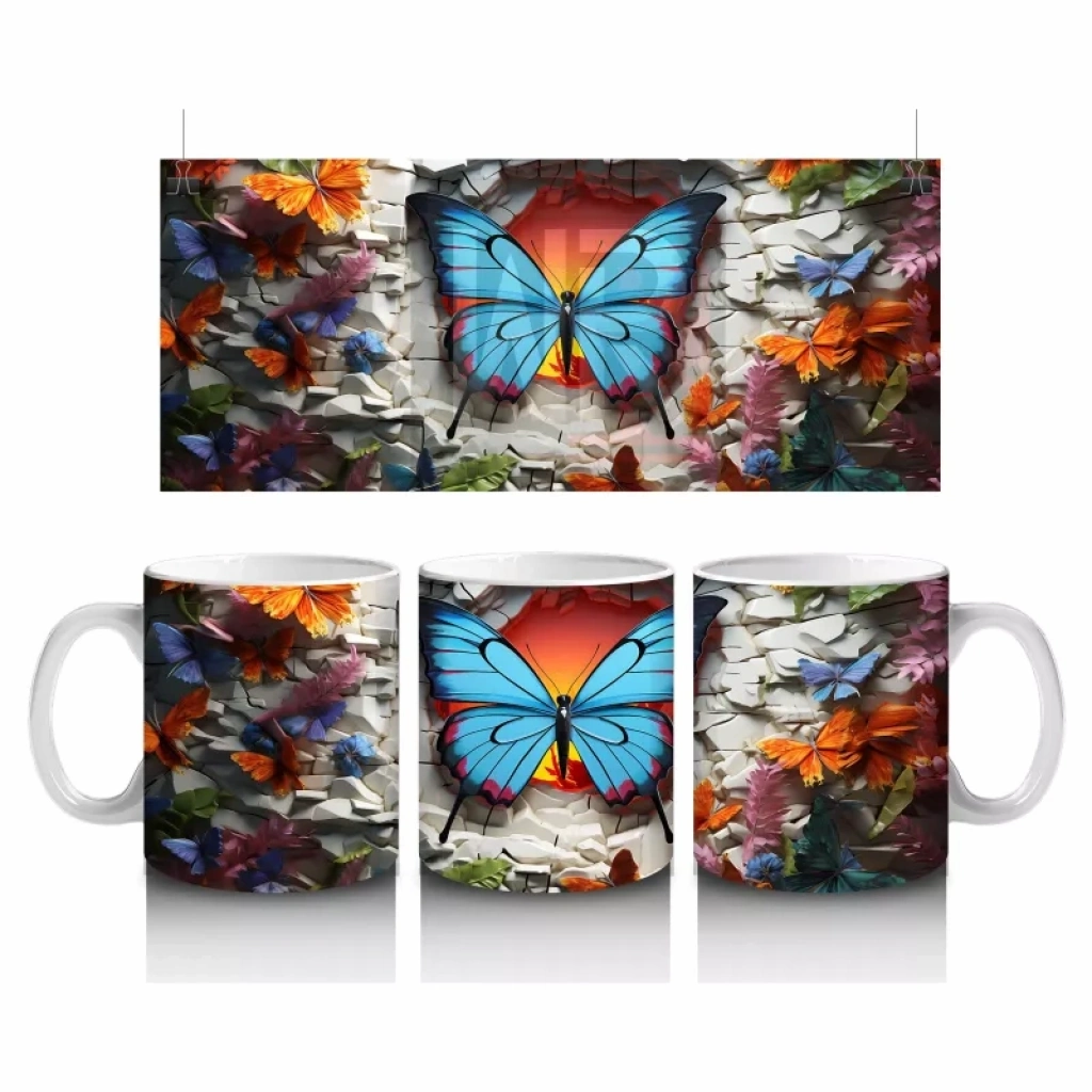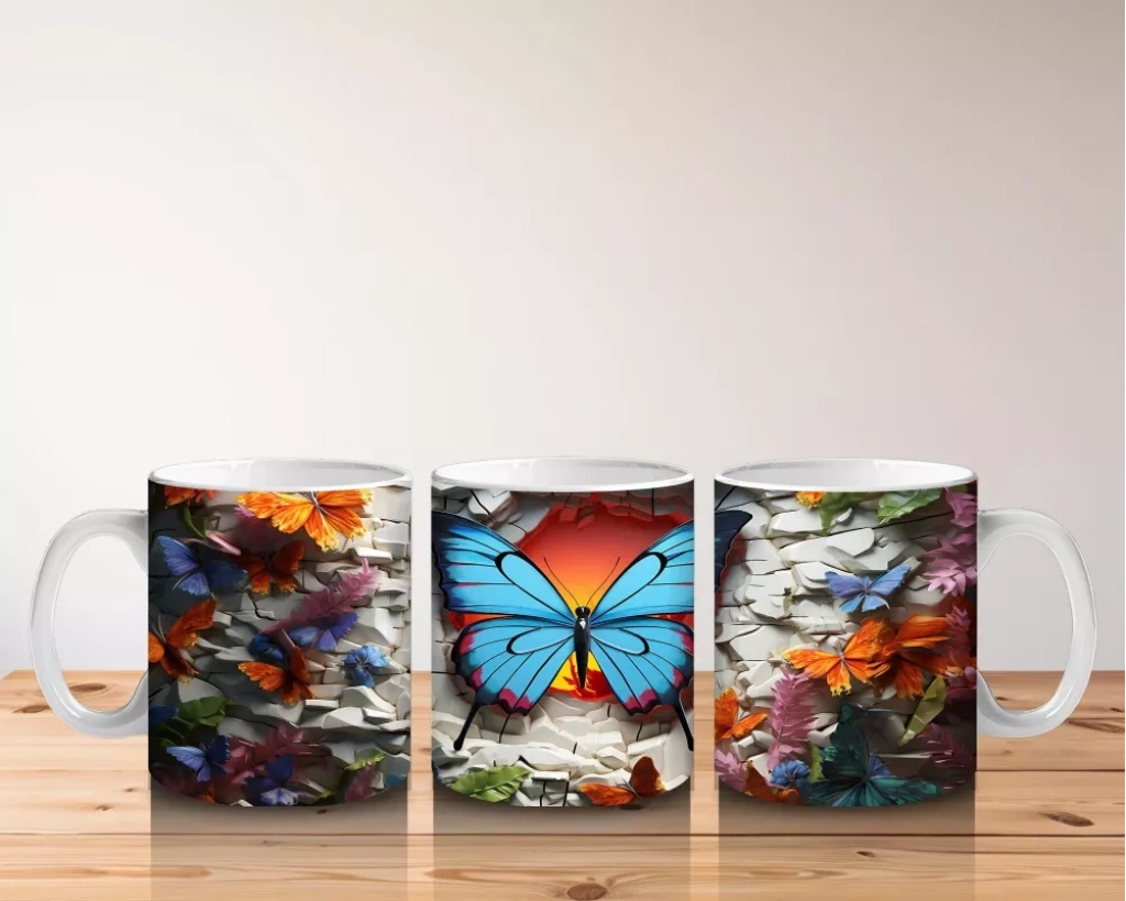 Granit Doku Üzerinde Mavi Kelebek – Baskılı Kahve Kupası