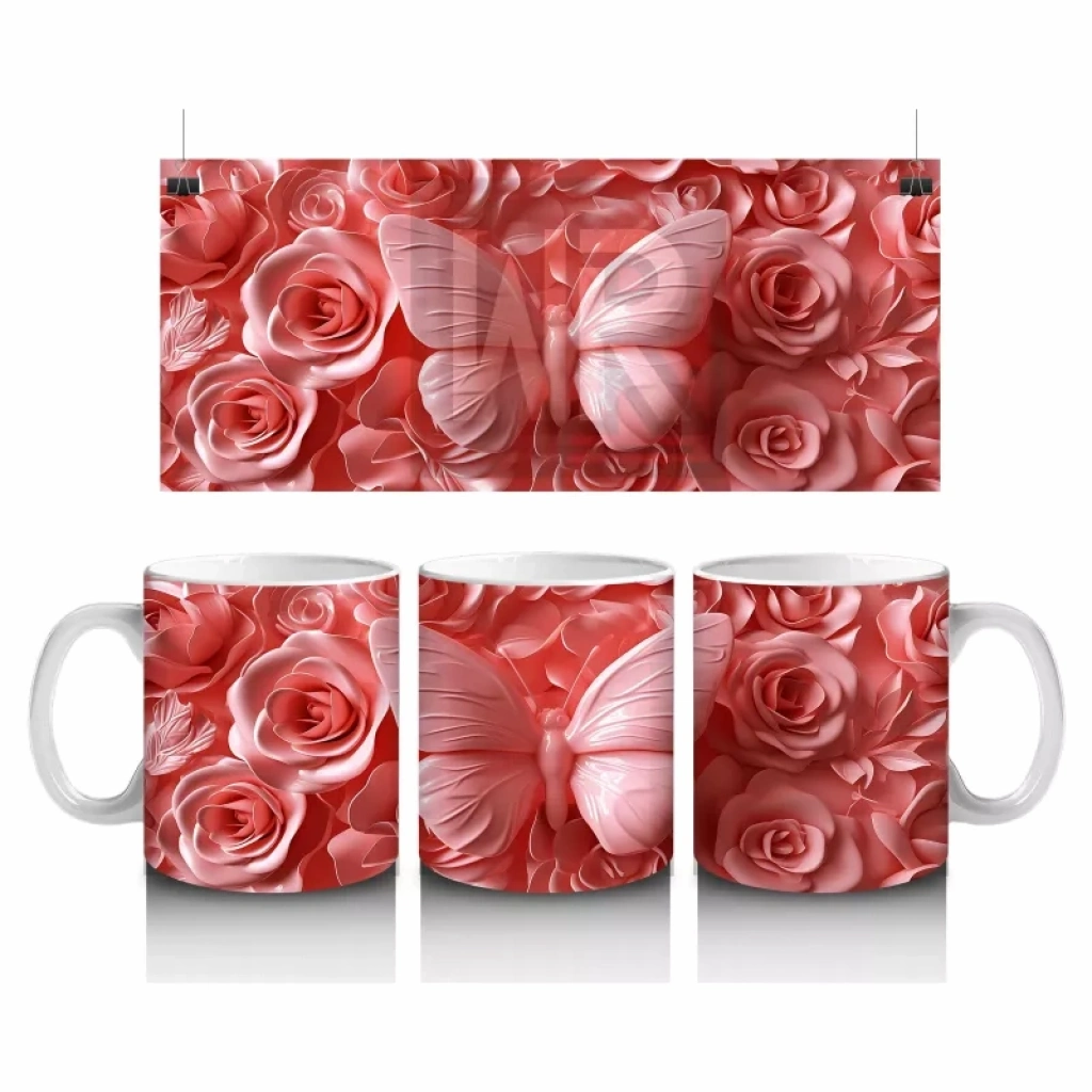 Renkli gül buketinin arasında uçuşan pembe kelebek, zarif ve romantik bir kompozisyon oluşturuyor. Doğal güzellikleri ve yumuşak renkleri sevenler için estetik bir kupa seçeneği.