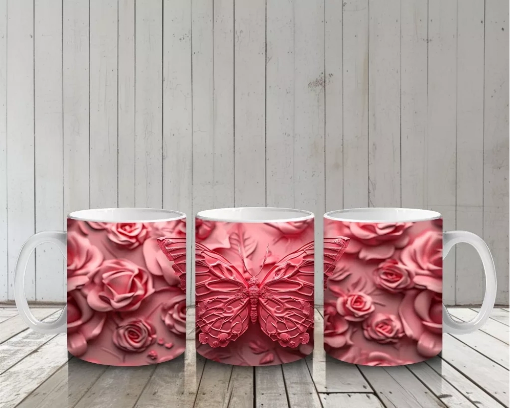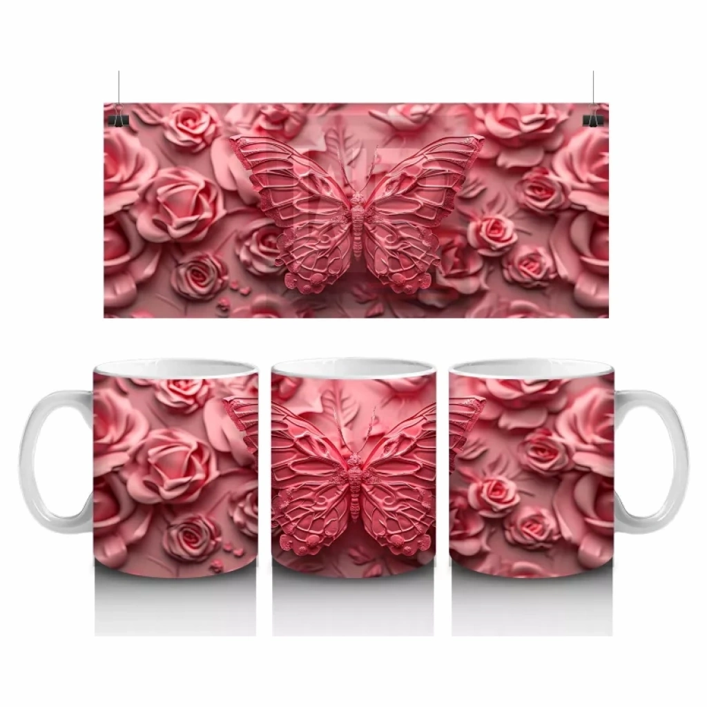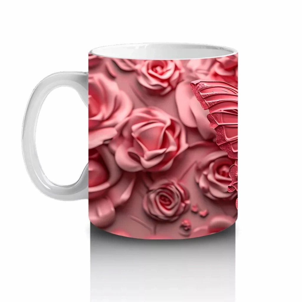 Işıl ışıl bir gül buketinin üstünde parlayan bir kelebek... Hem zarif hem etkileyici bu kupa, çiçek severlerin kalbini fethedecek.