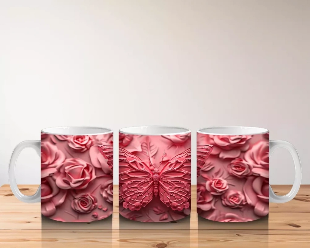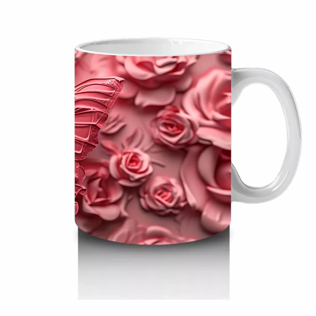 Gül Buketi Üzerinde Parlayan Kelebek – Baskılı Kahve Kupası