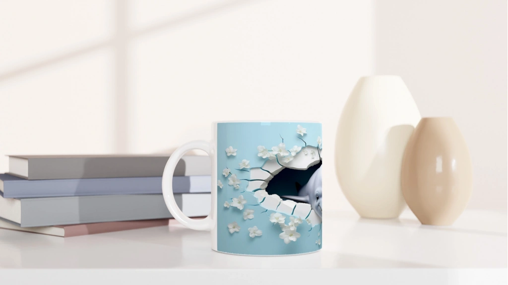 Gülen Yunus ve Çiçeklerle Delinen Duvar Su Altı Temalı Kupa Bardak