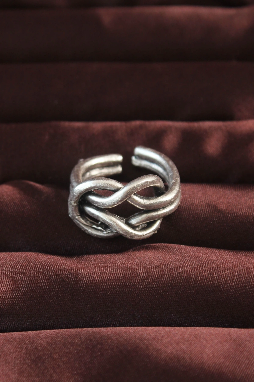 Gümüş Renk Düğüm Model Ayarlamalı Erkek Yüzük