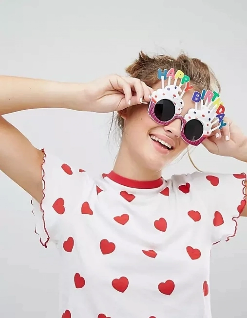 Happy Birthday Yazılı Beyaz Fuşya Renk Parti Gözlüğü