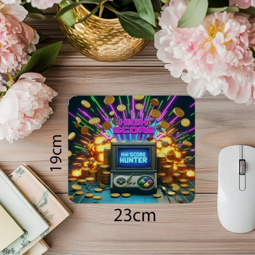 High Score Hunter yazılı retro gamer mousepad ile yüksek skor peşinde koş! Nostaljik tasarım ve rahat yüzeyiyle oyun performansını artır.