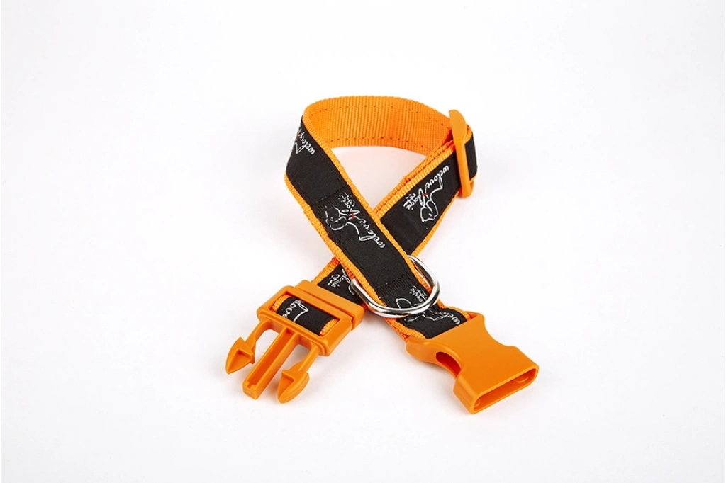 Doggie Köpek Desenli Dokuma Köpek Boyun Tasması 3 cm x 36-60 cm Turuncu