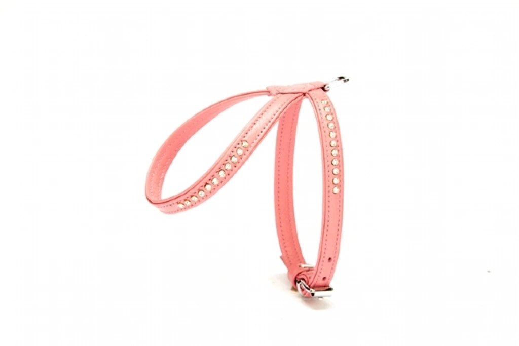 Doggie Flotter Swarovski Taşlı Deri Köpek Göğüs Tasması 1,2 x 21-30 cm Pembe