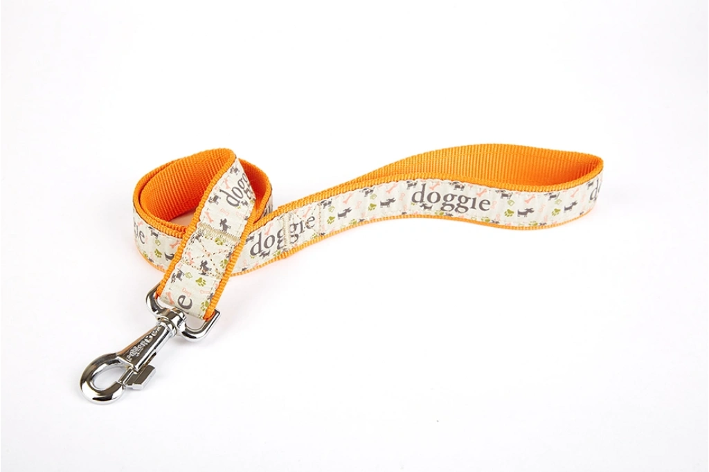Doggie Desenli Süslü Dokuma Köpek Gezdirme Kayışı El Yapımı 3 x 100 cm Turuncu