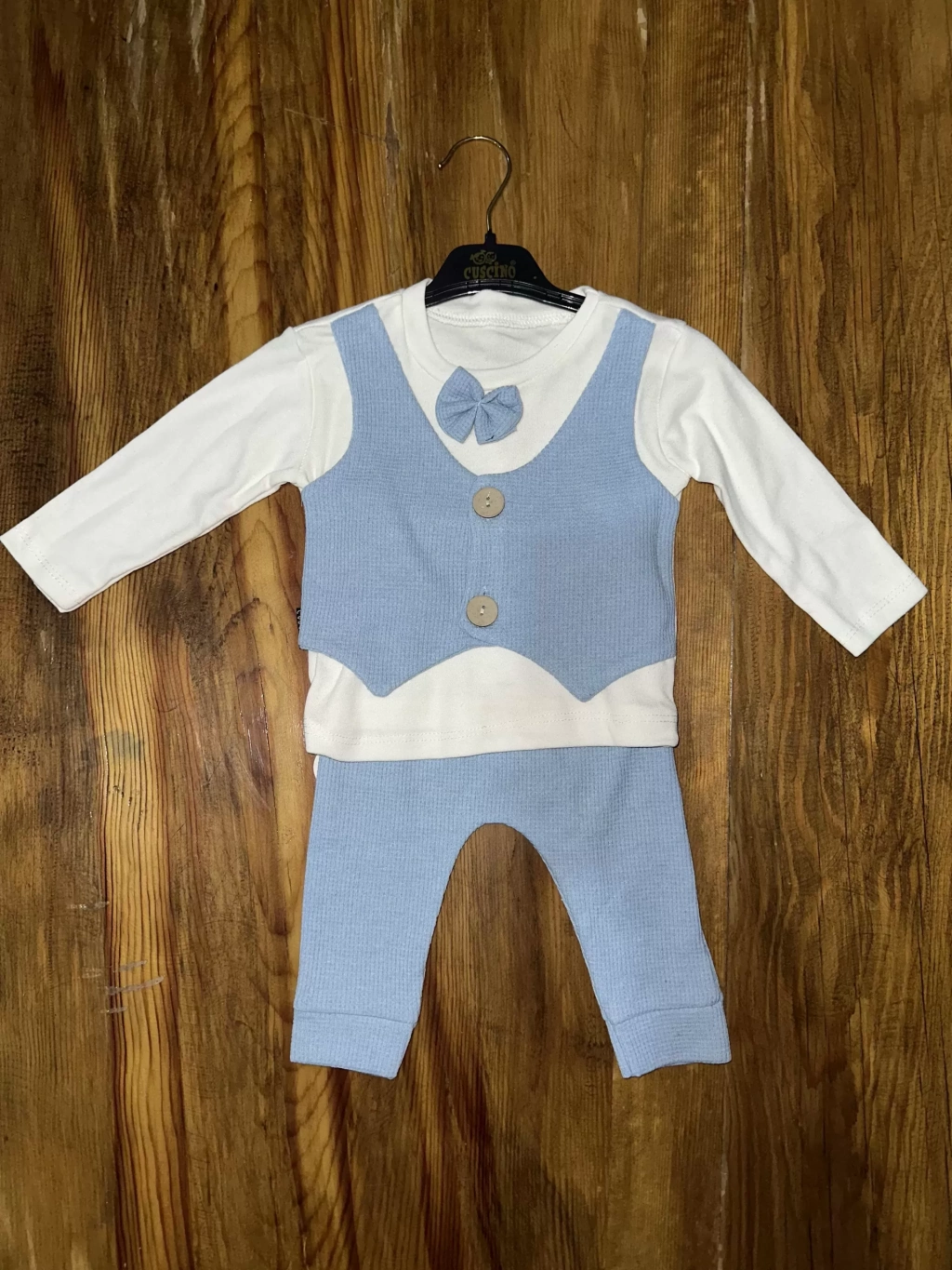 KAZAX markasının 3-12 aylık papyonlu takım mavibeyaz, küçük prensinizi şık ve tarz gösterir.