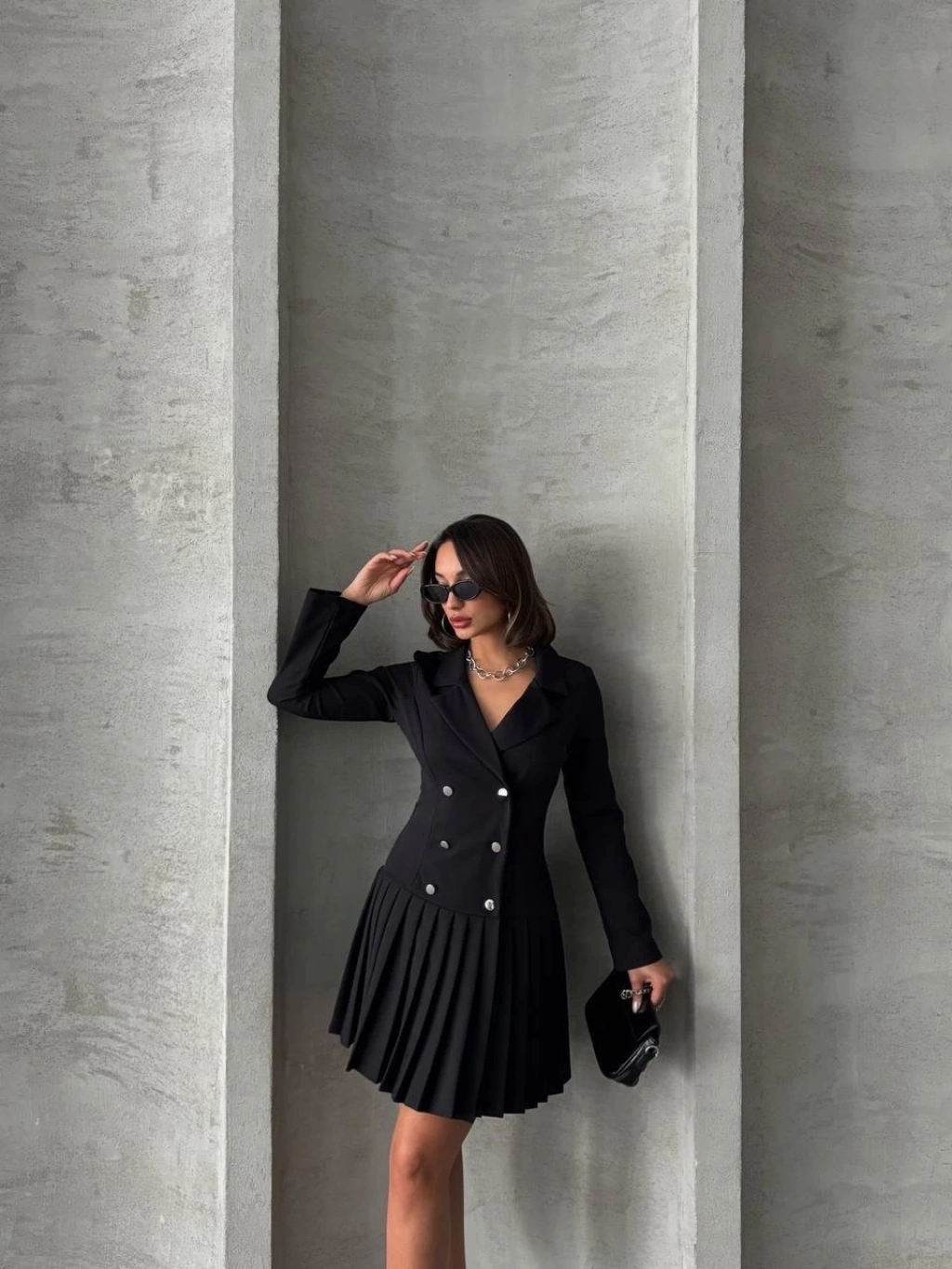 TAVSİYE EDİLEN GÜVENLİ SATICI Altı piliseli uzun kollu ceket elbise siyah s255016