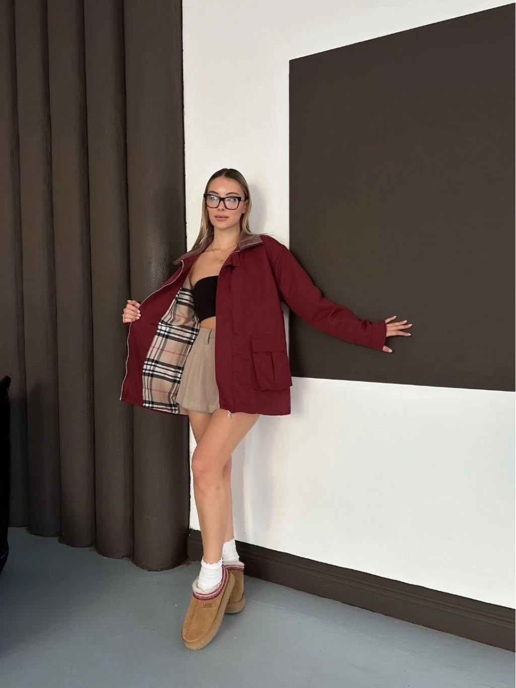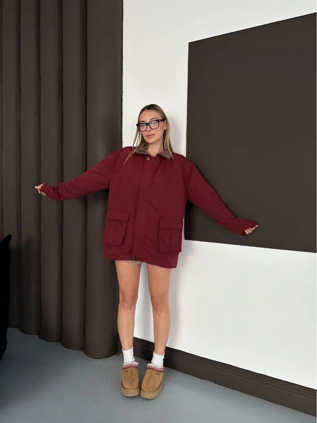 Astarlı yaka detaylı artos ceket bordo st2651019