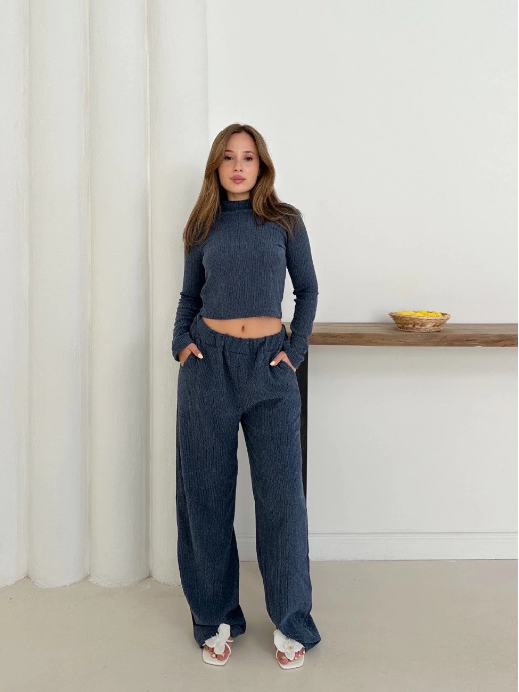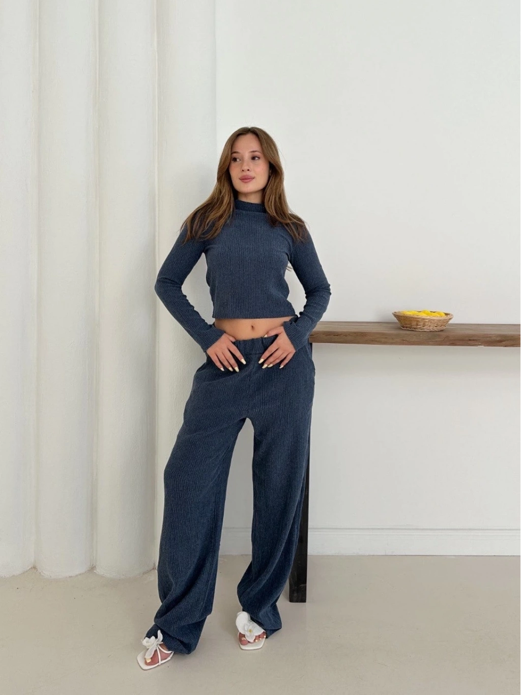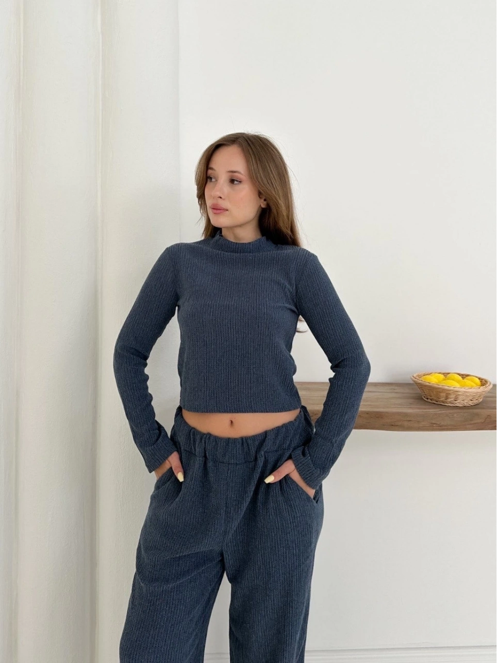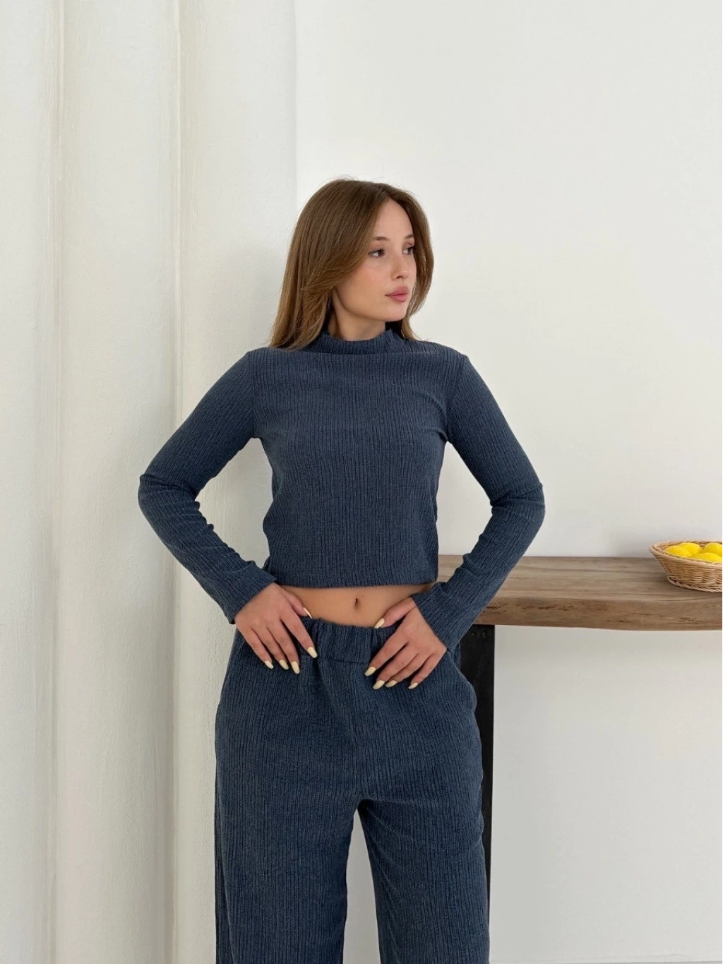 Balıkçı yaka örme takım lacivert st265865