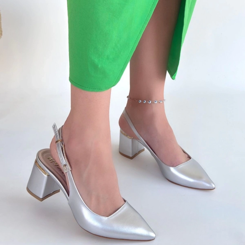 • Buant Gümüş Cilt Topuklu Ayakkabı