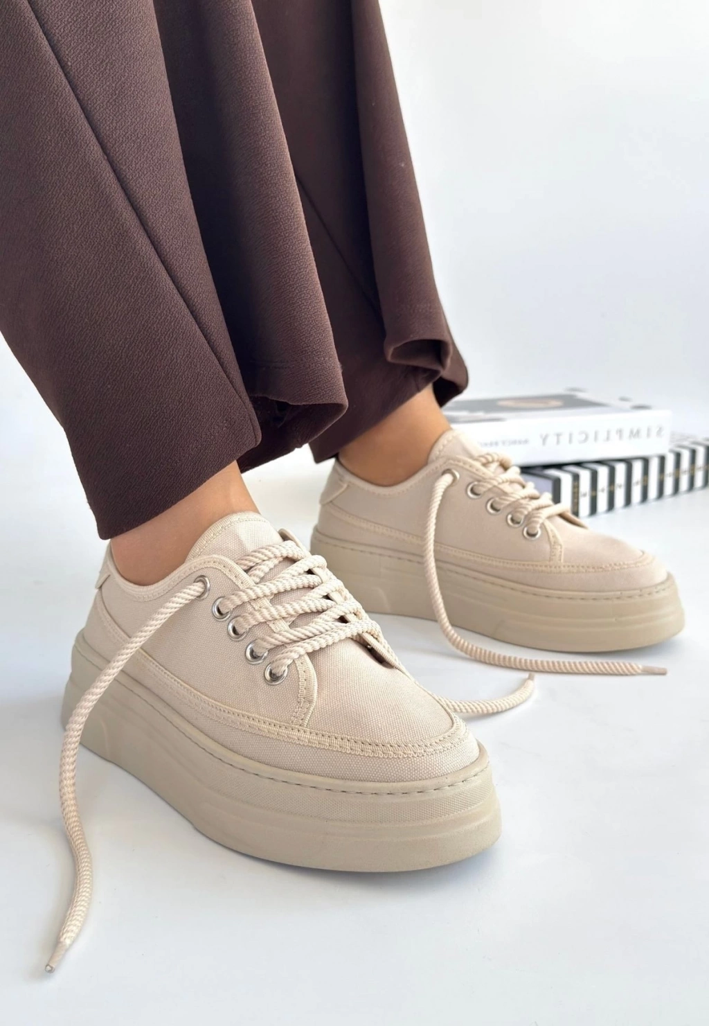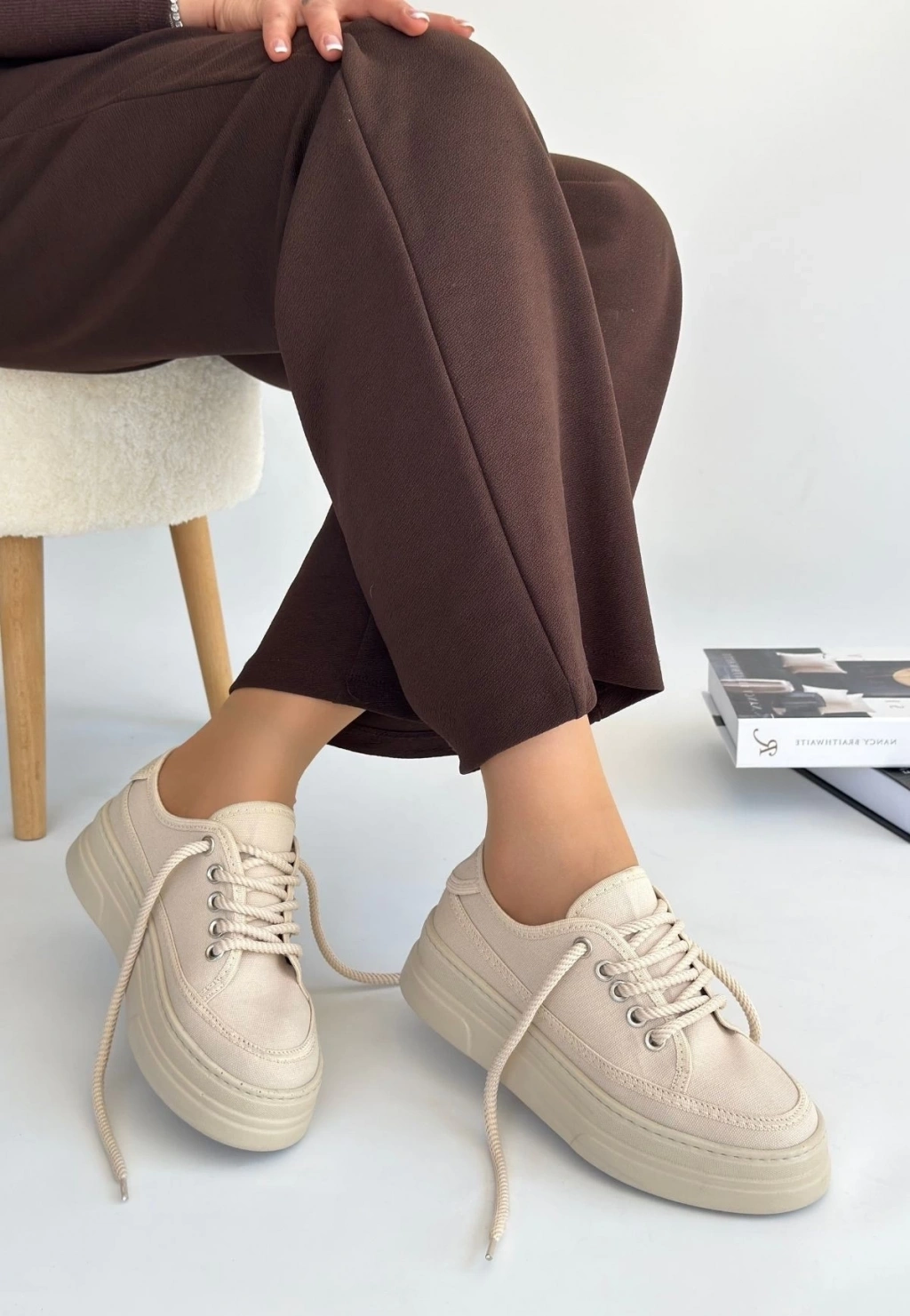 TAVSİYE EDİLEN GÜVENLİ SATICI Carin Bej Keten Bağcıklı Spor Ayakkabı