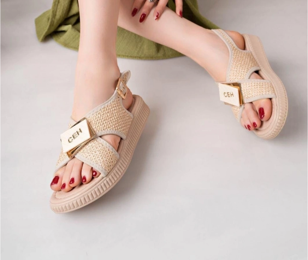 Cate Bej Hasır Cilt Sandalet