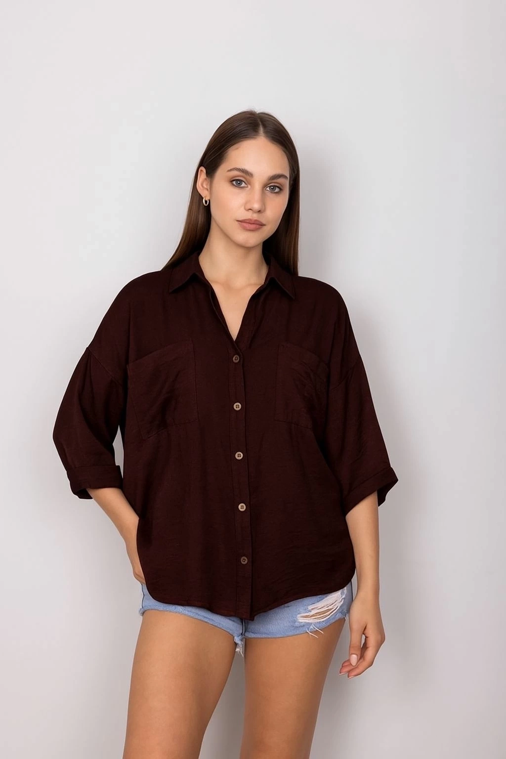 TAVSİYE EDİLEN GÜVENLİ SATICI Cepli salaş gömlek koyu kahve t1010