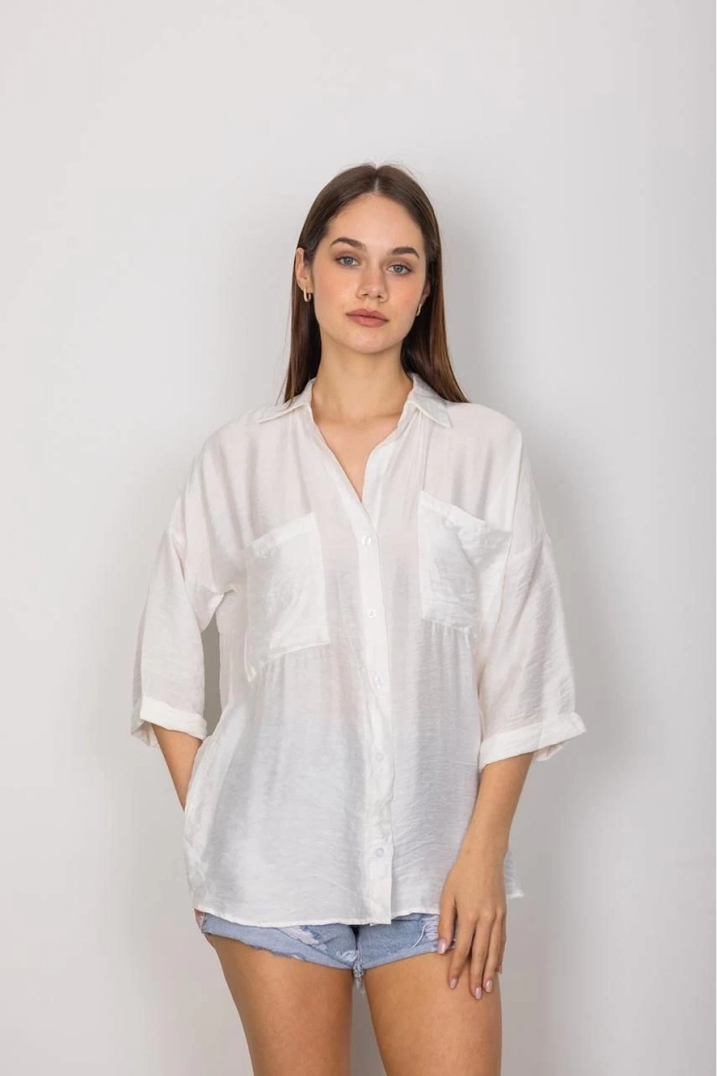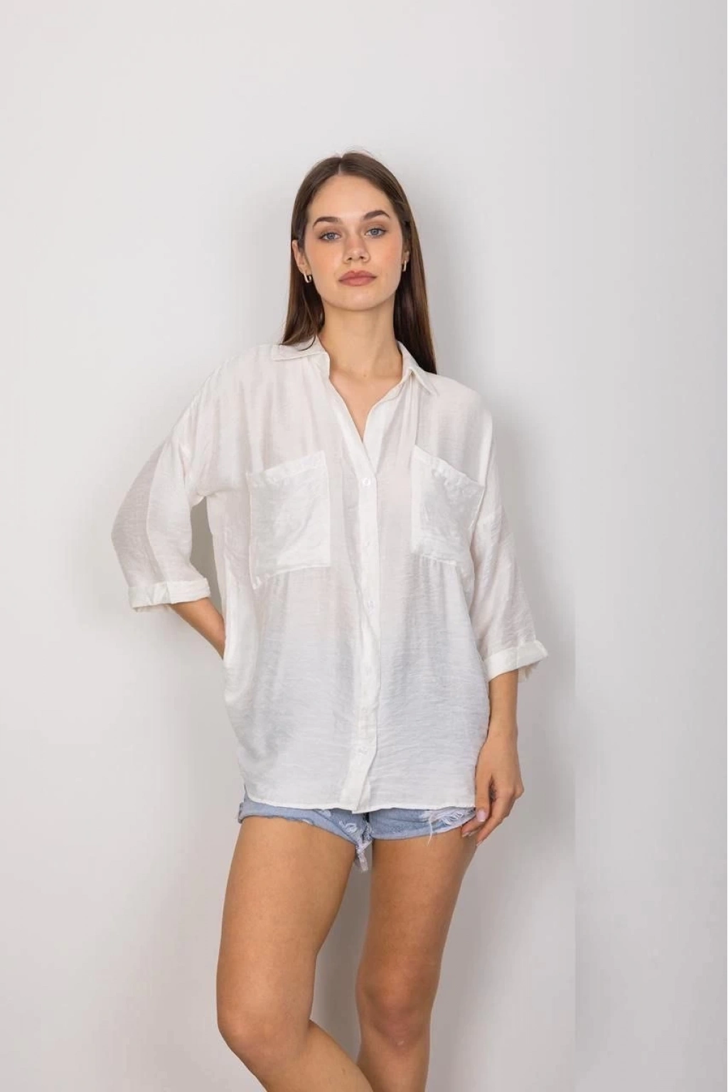 Şıklığı seven kadınların gardırobunda mutlaka bulunması gereken bir parçadır. T1010 Cepli Salaş Gömlek ile hem günlük hayatta hem de özel günlerde şık ve rahat bir görünüme sahip olabilirsiniz.