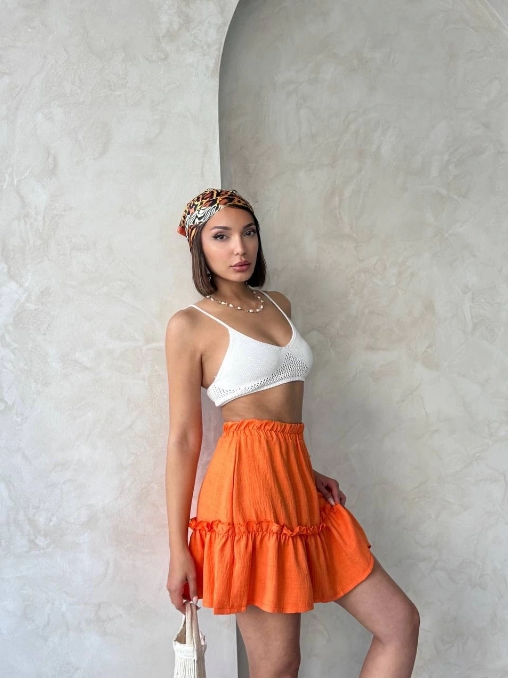 Bu şık ve rahat eteği günlük hayatta, arkadaş buluşmalarında ya da tatil günlerinde tercih edebilir, şıklığınızı konuşturabilirsiniz. Çingene keten etek turuncu s24808, gardırobunuzun vazgeçilmez parçalarından biri olmaya aday!