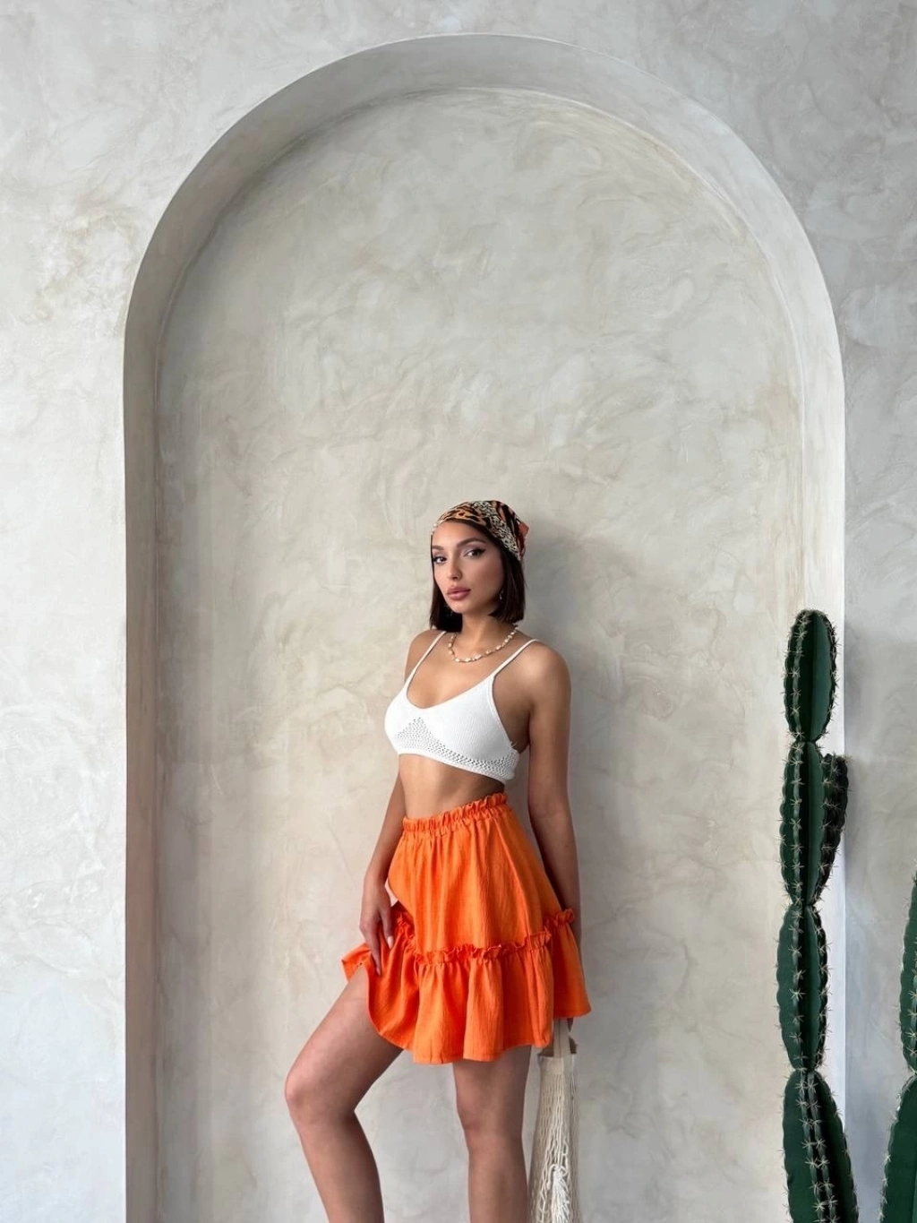 Bu şık ve rahat eteği günlük hayatta, arkadaş buluşmalarında ya da tatil günlerinde tercih edebilir, şıklığınızı konuşturabilirsiniz. Çingene keten etek turuncu s24808, gardırobunuzun vazgeçilmez parçalarından biri olmaya aday!