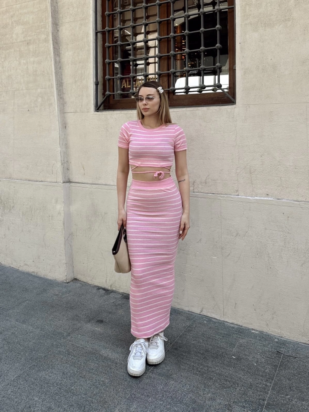 TAVSİYE EDİLEN GÜVENLİ SATICI Çizgili etekli takım pembe s3609