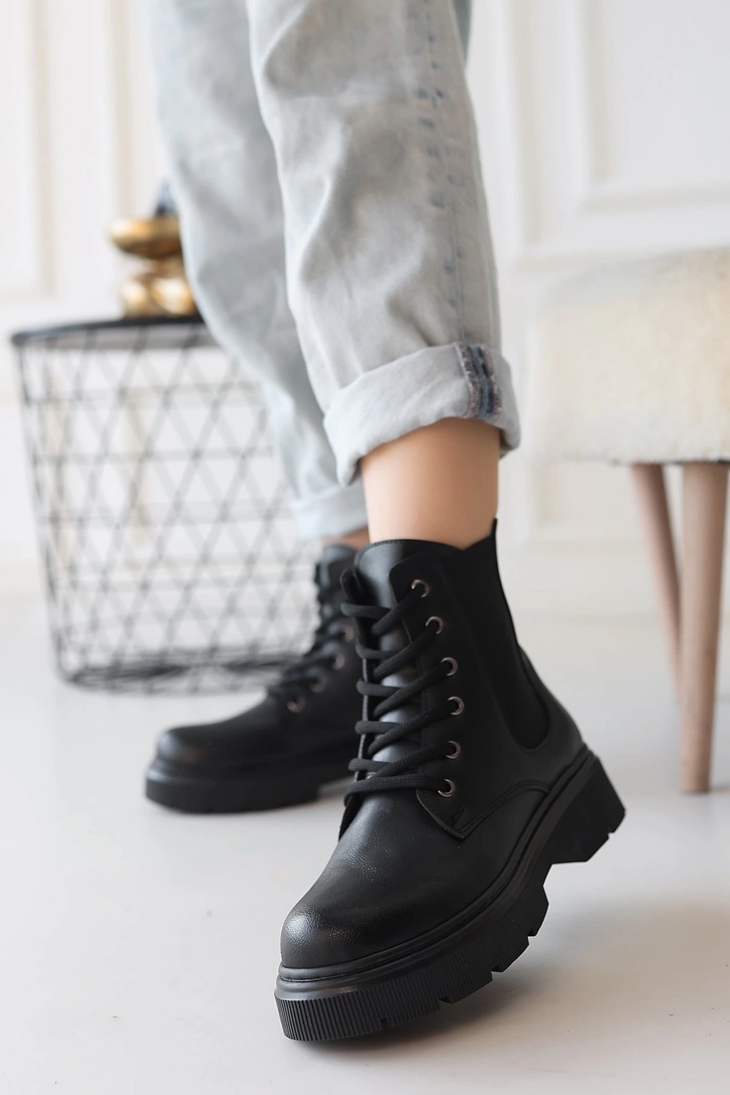 Detay : Topuklu Yandan Fermuarlı Lastikli Bağcıklı Bot